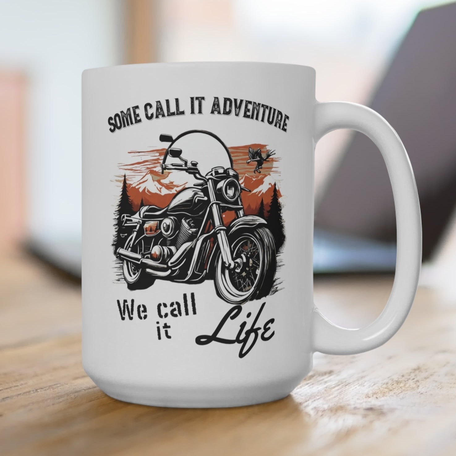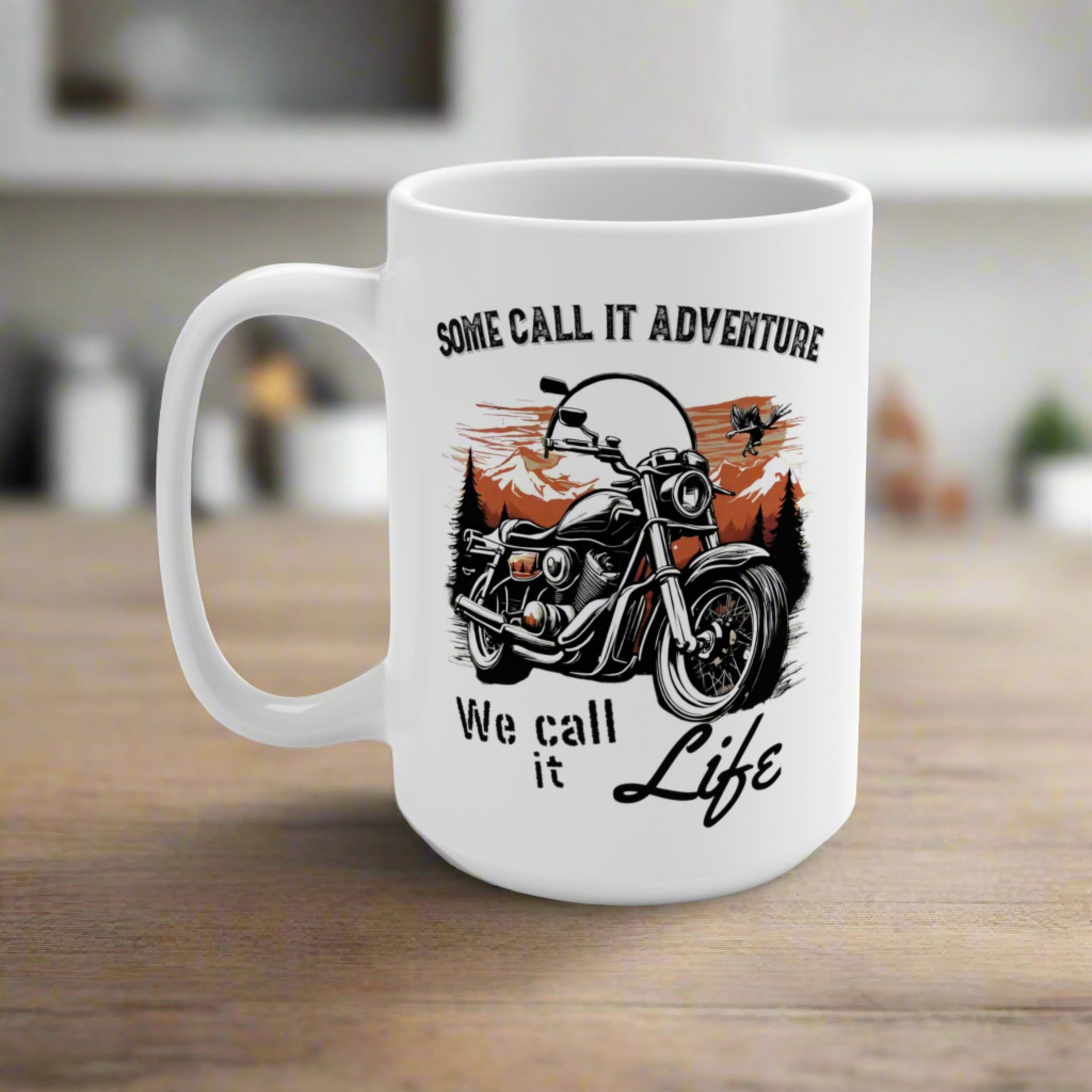 Rev up his mornings with our rugged Motorcycle Mug that reads 'Some Call it Adventure, We Call it Life '! The perfect gift for him, this sturdy and stylish cup fuels his passion for motorbikes with every sip.
