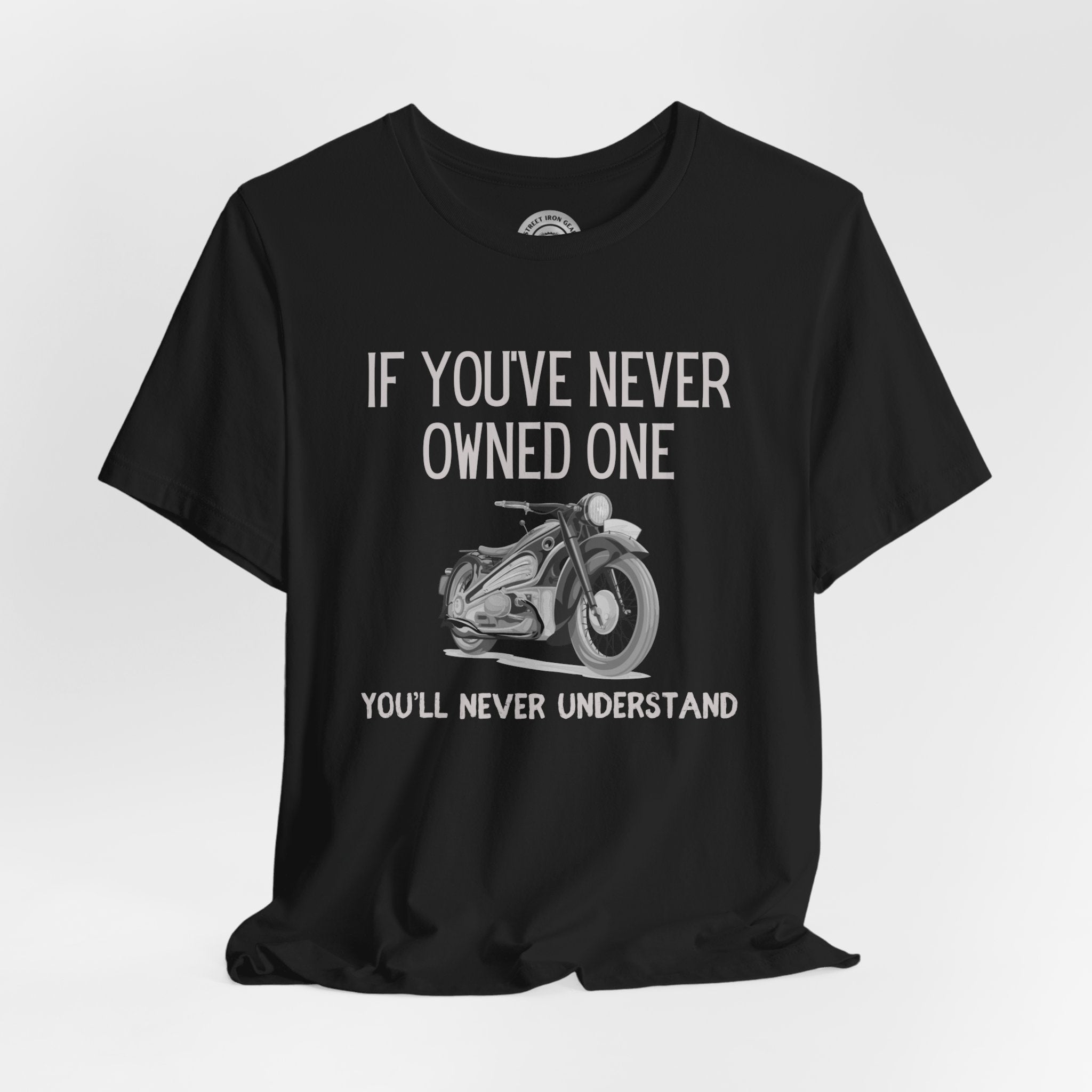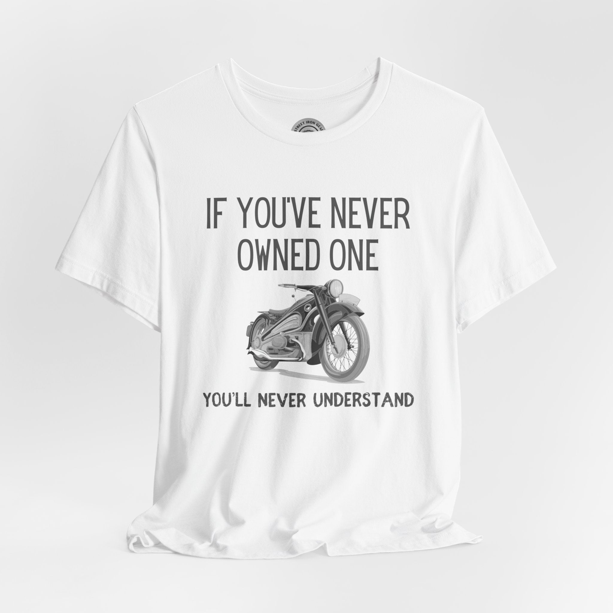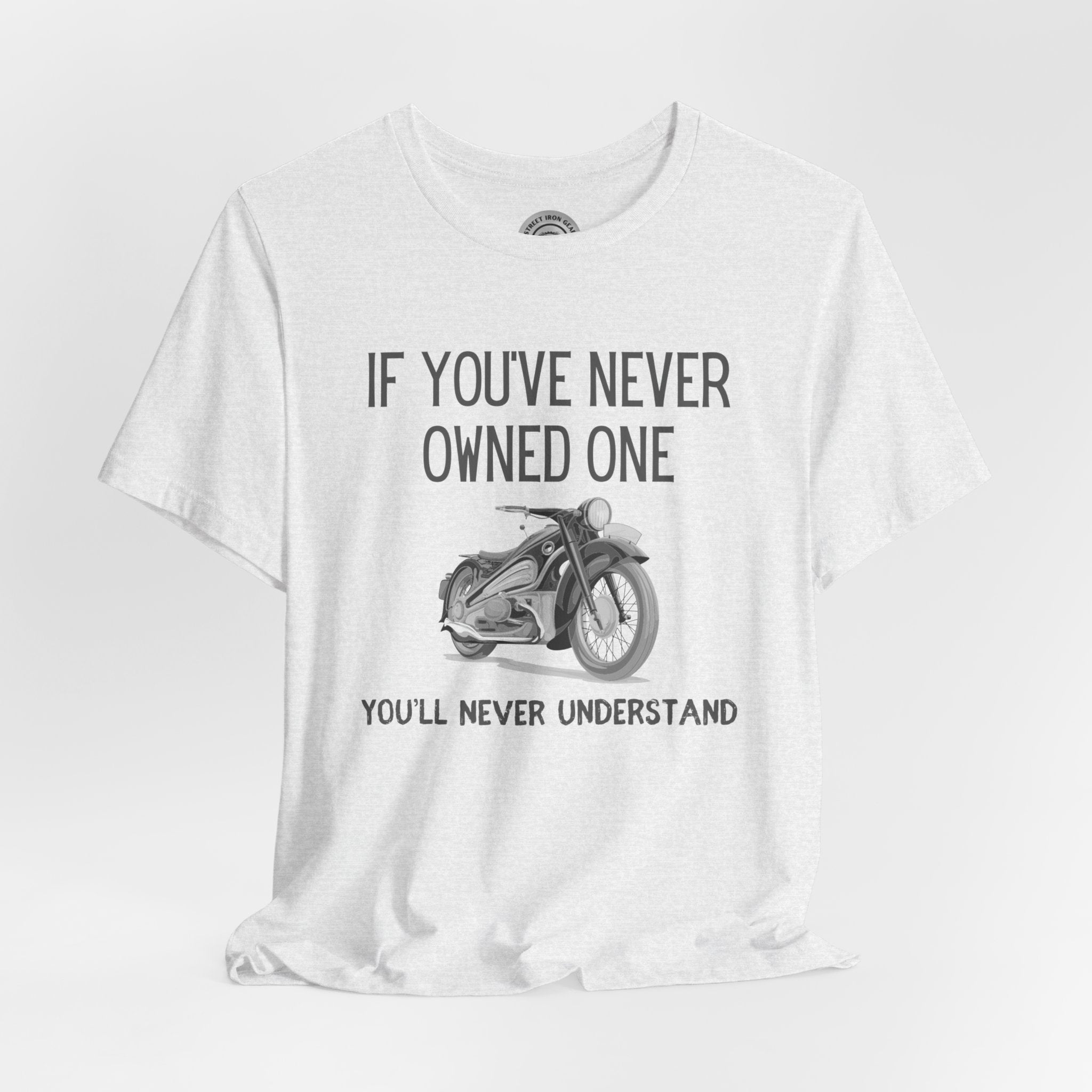 Rev up your passion for cruising with our "If you've never owned one, You'll never understand" Biker T-shirt. Featuring a classic cruiser, this shirt speaks to the camaraderie and mystique of motorcycle ownership.
