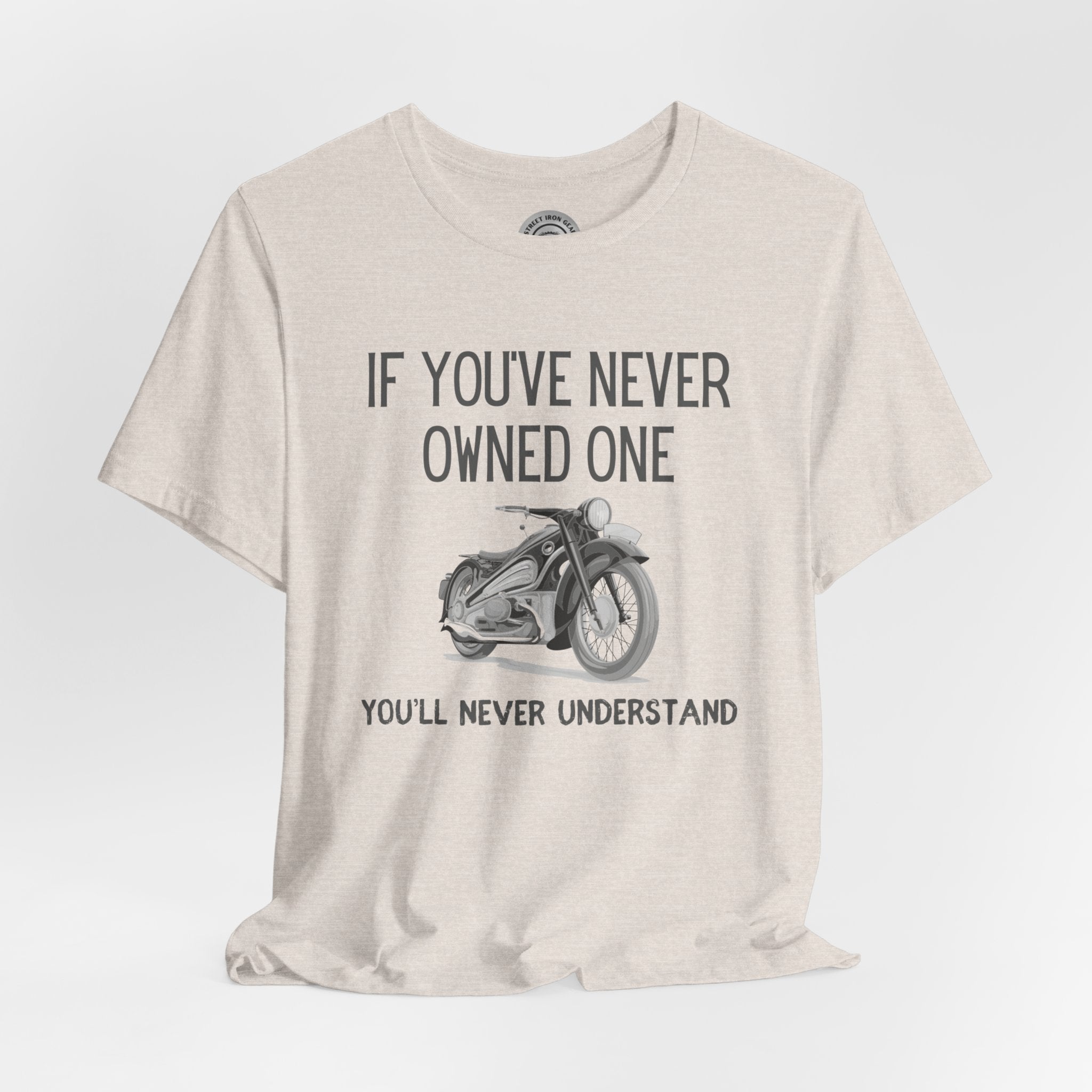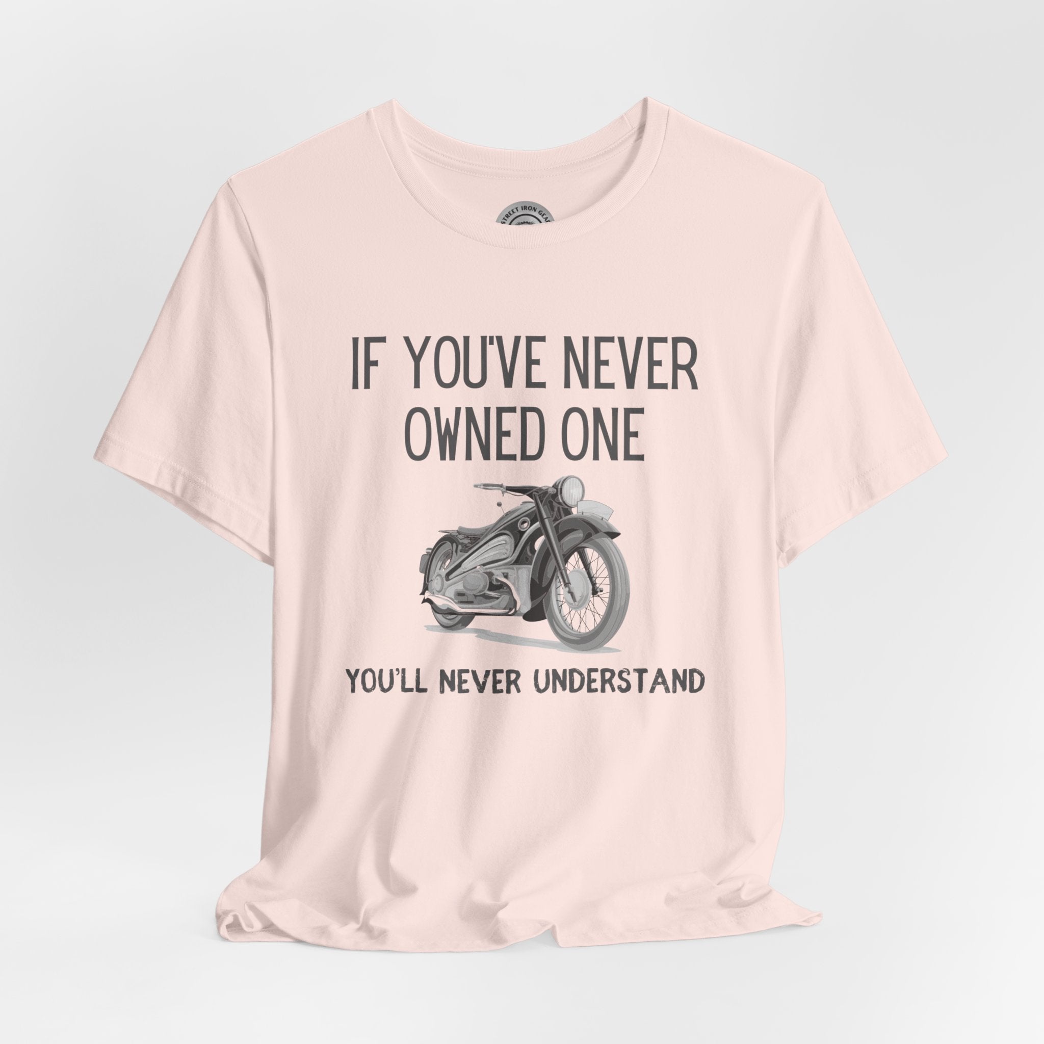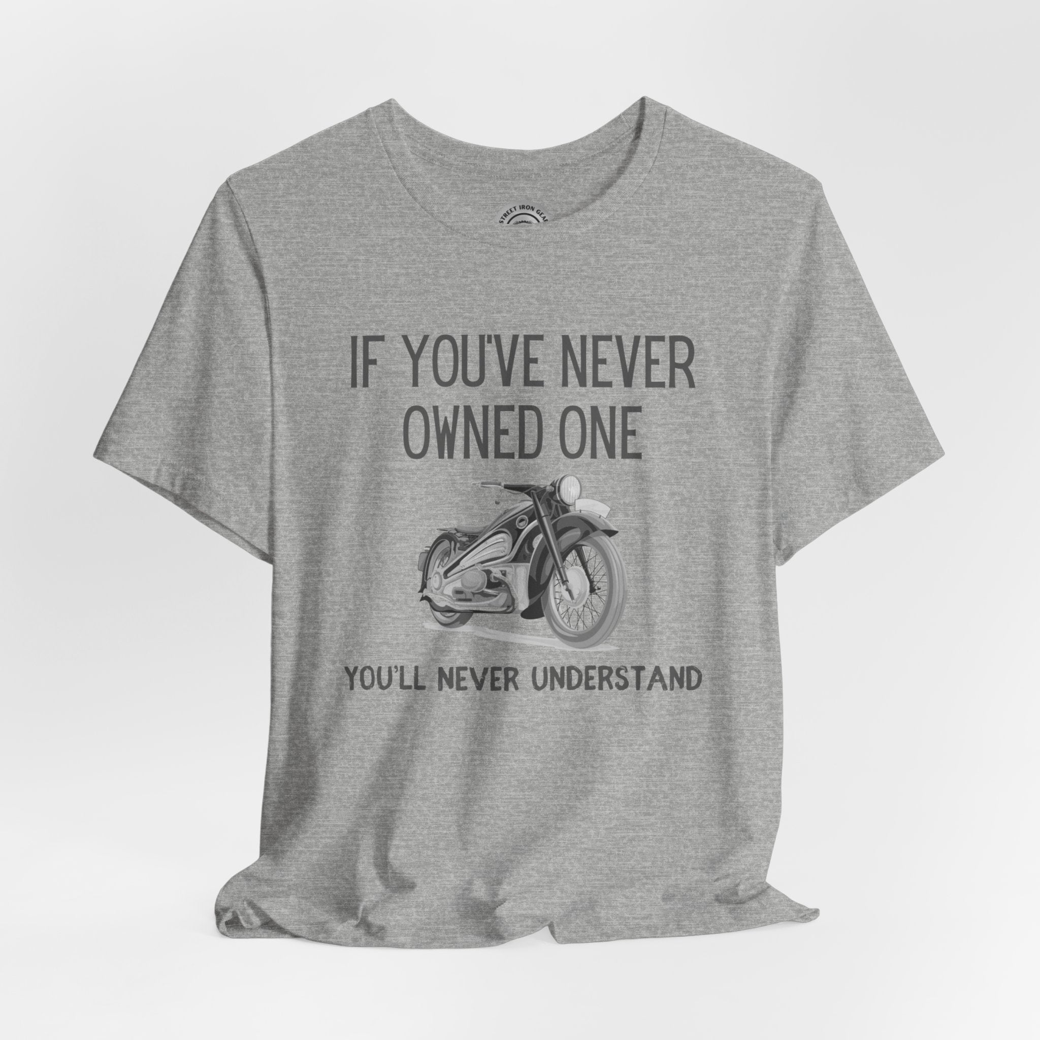 Rev up your passion for cruising with our "If you've never owned one, You'll never understand" Biker T-shirt. Featuring a classic cruiser, this shirt speaks to the camaraderie and mystique of motorcycle ownership.