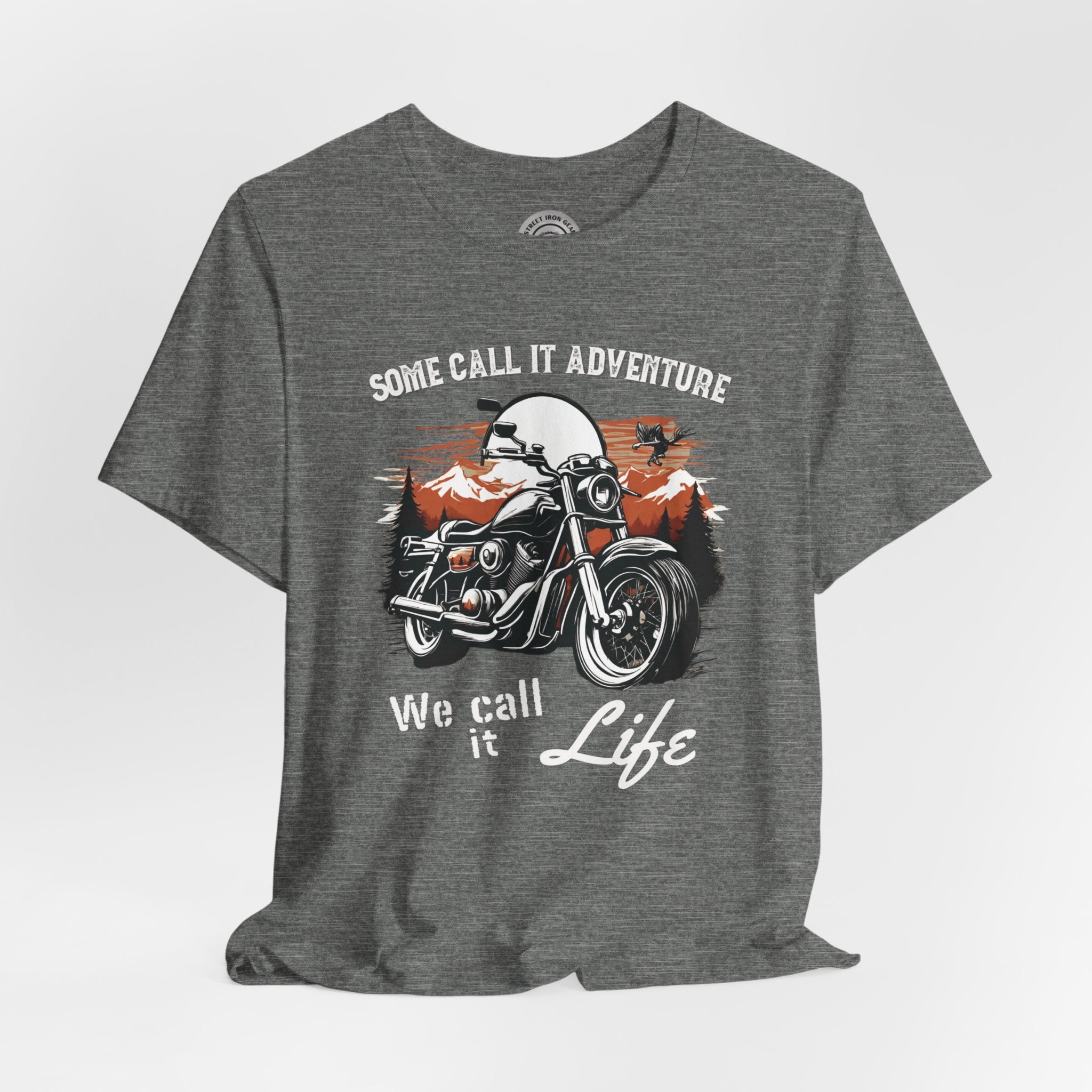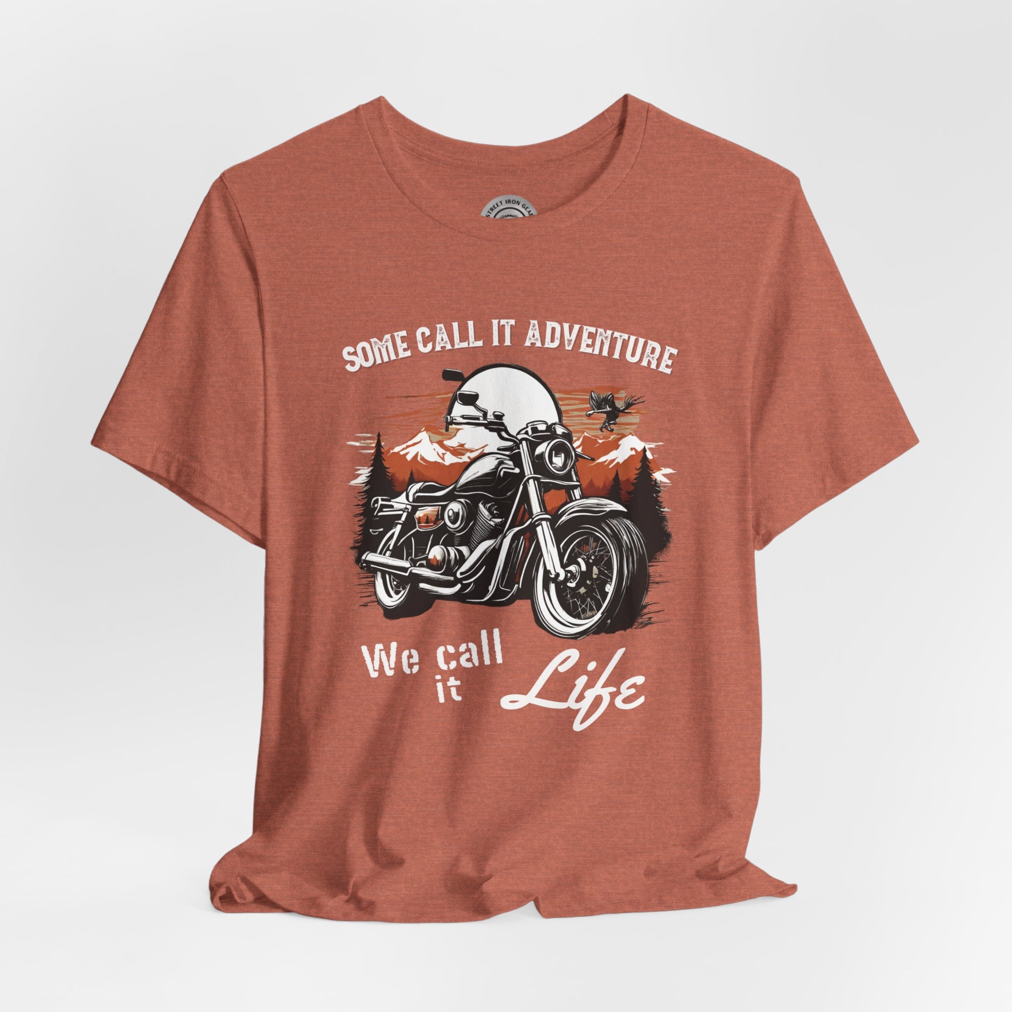 Embrace the thrill of the open road with our Motorcycle T-shirt that boldly declares, "Some Call it an Adventure, We call it Life." Featuring a cruiser motorcycle against a sun-soaked horizon, this tee encapsulates the spirit of freedom on two wheels.