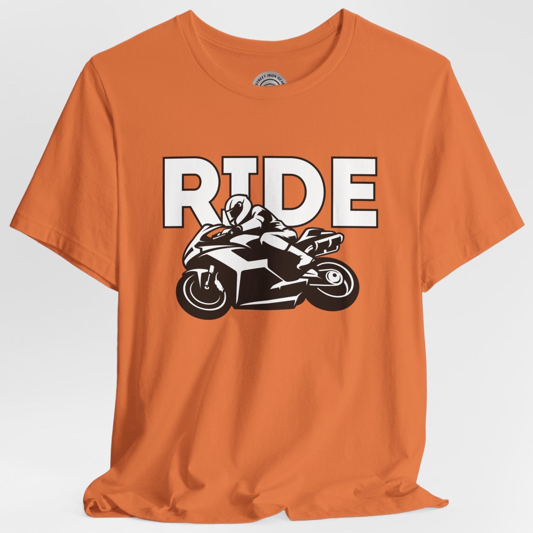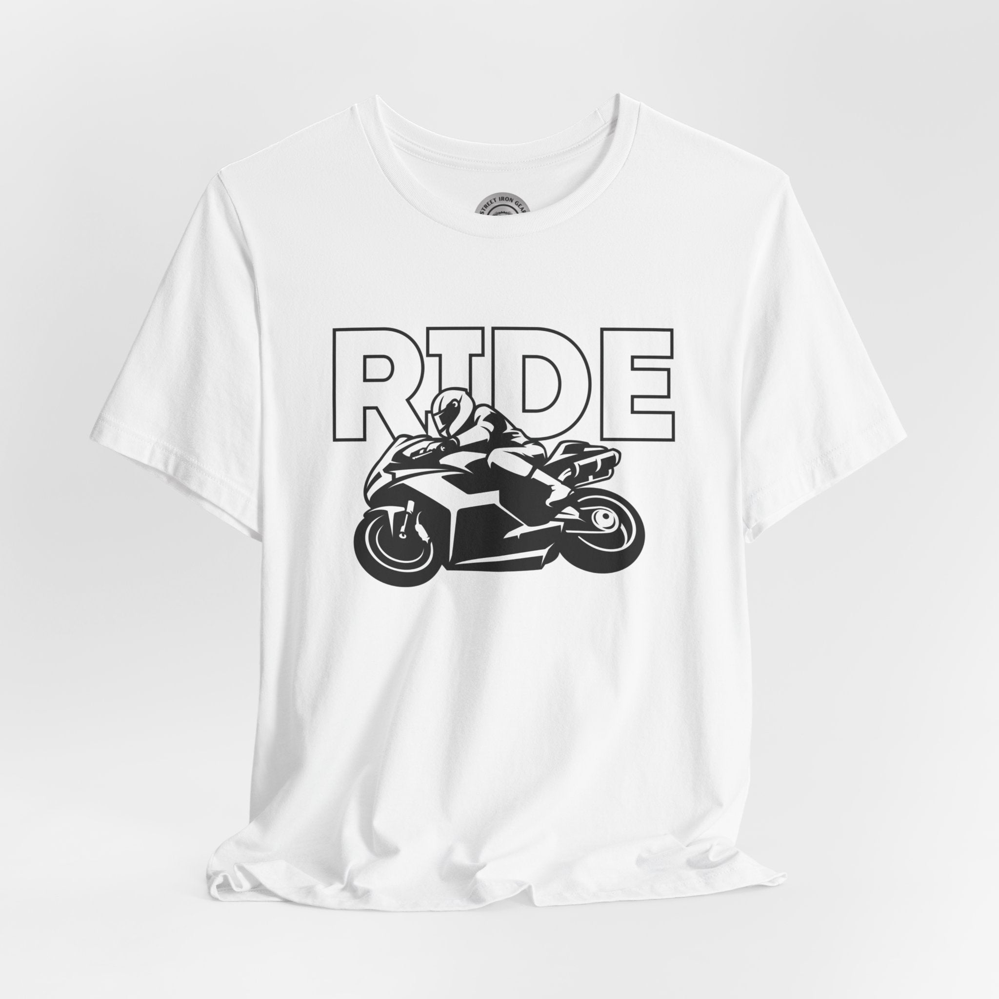 Unleash your passion with our 'RIDE' T-shirt. In bold font and featuring a large silhouette of a sports bike, this men's Motorcycle T-shirt is a must-have for every 'ride or die' enthusiast. It's the perfect addition to your collection of motorcycle gifts for yourself.