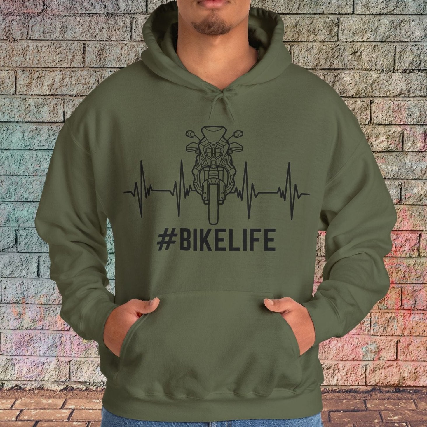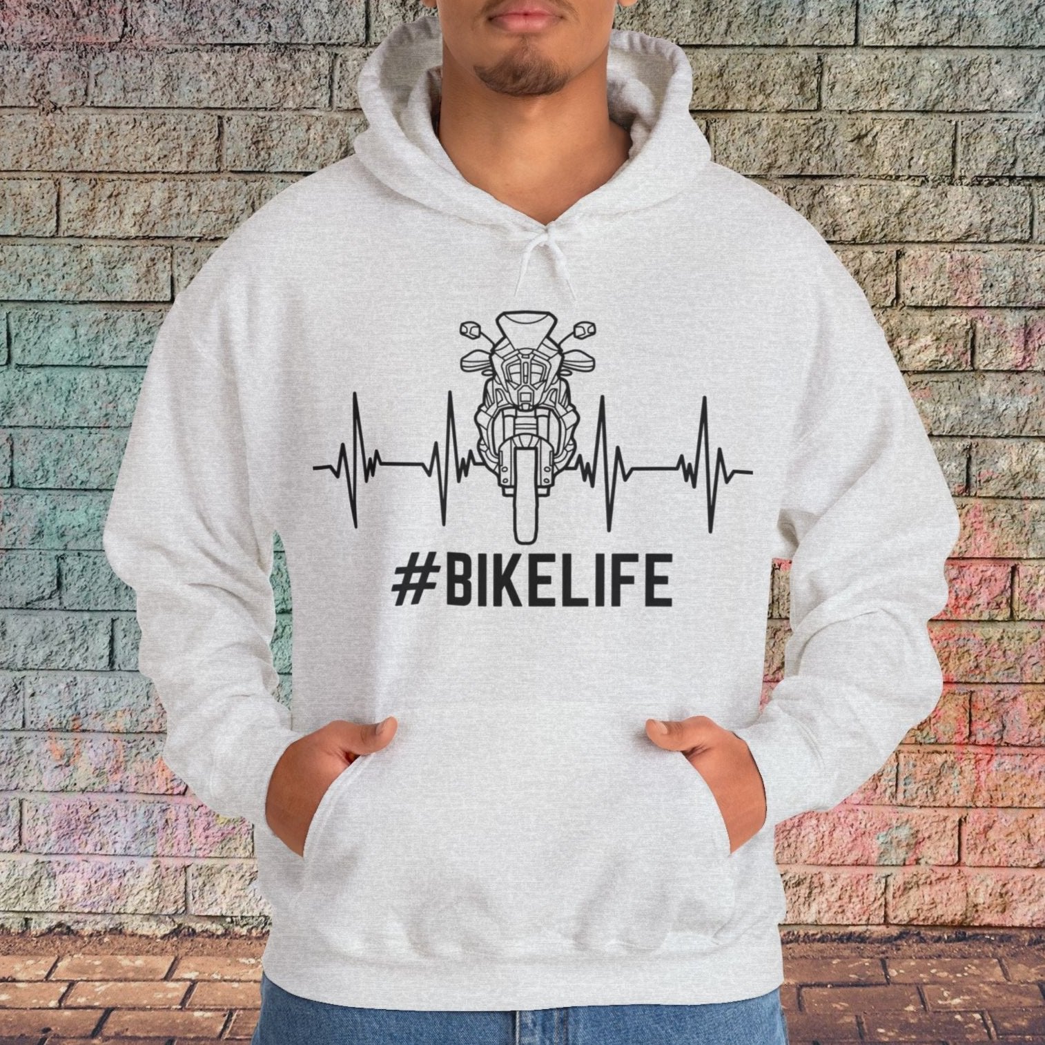 Celebrate your passion for the open road with our '#BikeLife' sweatshirt, featuring a striking sports motorcycle graphic intertwined with a heartbeat line. Perfect for motorsports enthusiasts, this shirt captures the essence of adventure and freedom that defines the biker lifestyle. Made from high-quality, breathable fabric, it's the ultimate addition to your riding gear, ensuring comfort and style both on and off the bike..