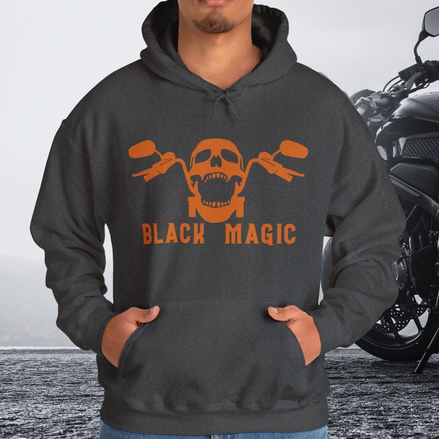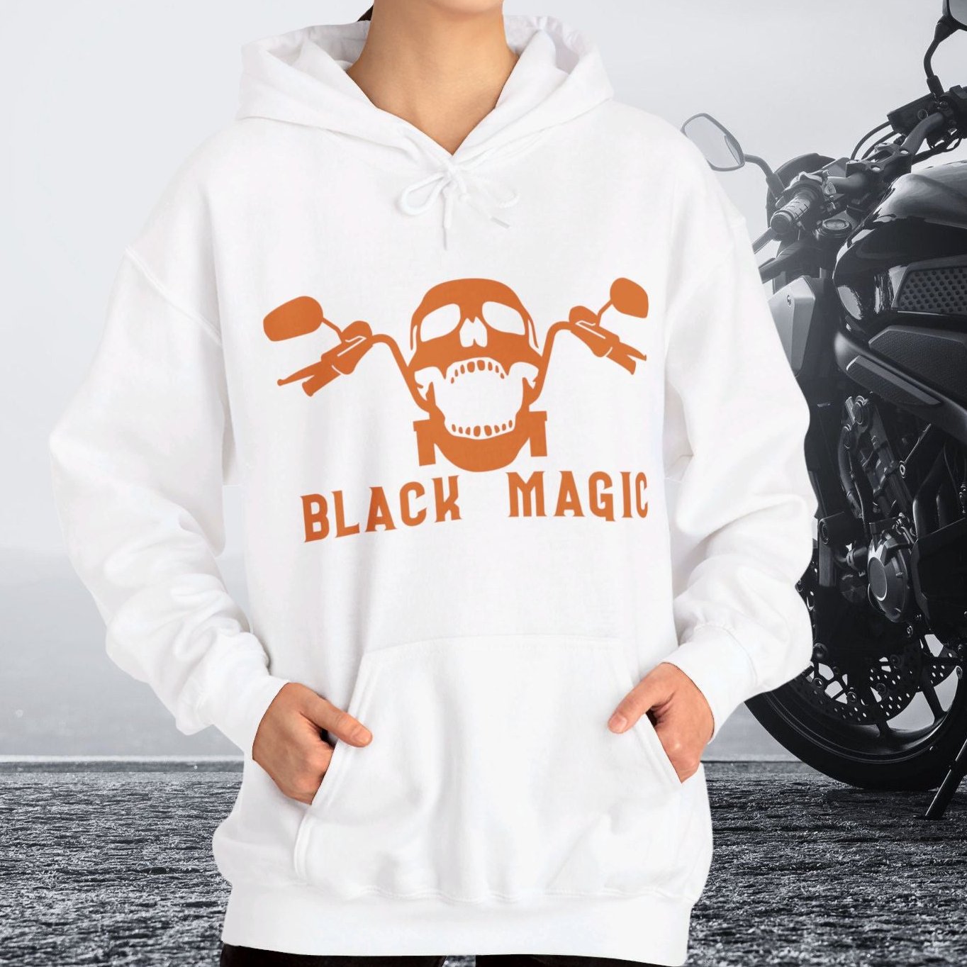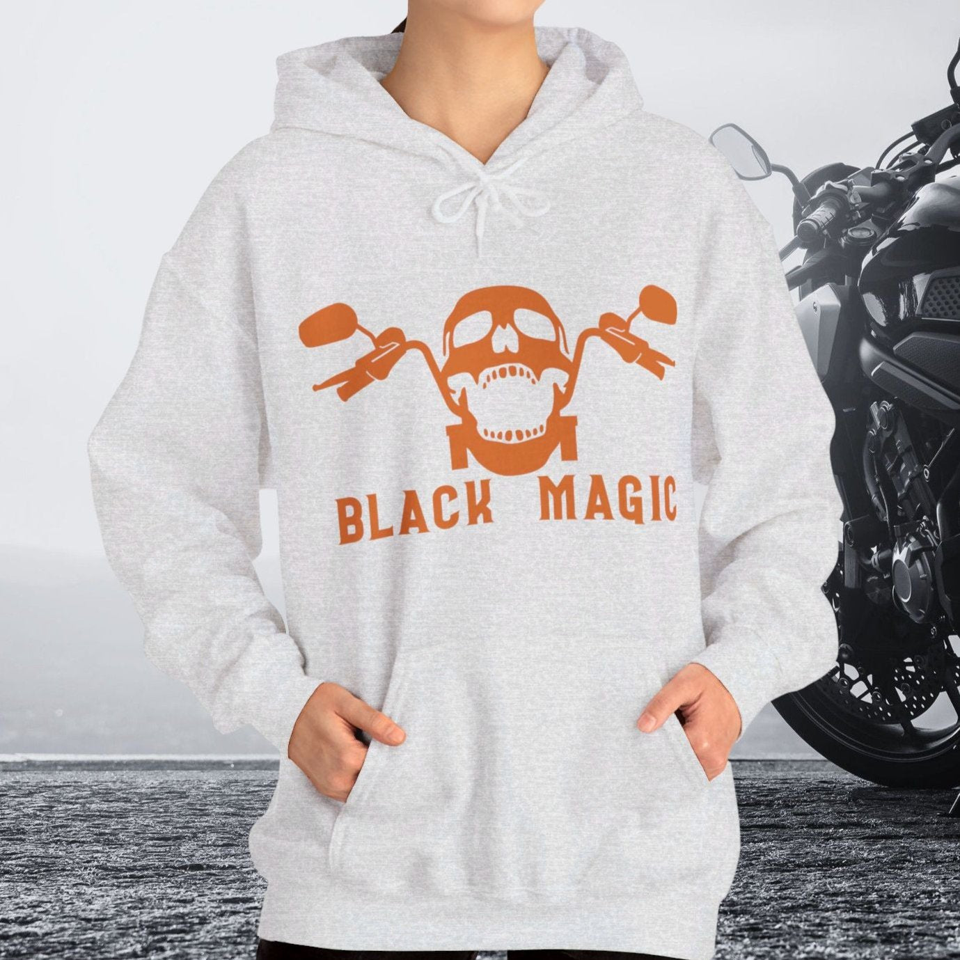 Unleash your dark side with our Black Magic hooded sweatshirt, featuring a bold, screaming skull gripping motorcycle handlebars. This edgy design is perfect for riders who love to make a statement both on and off the road. Crafted from premium, soft fabric, this hoodie offers both comfort and style, making it an ideal addition to your biker wardrobe. Whether you’re hitting the highway or just hanging out, this Black Magic hoodie is your go-to choice for expressing your rebellious spirit. Perfect for motorcycle enthusiasts, skull lovers, and those who appreciate unique, gothic-inspired apparel.