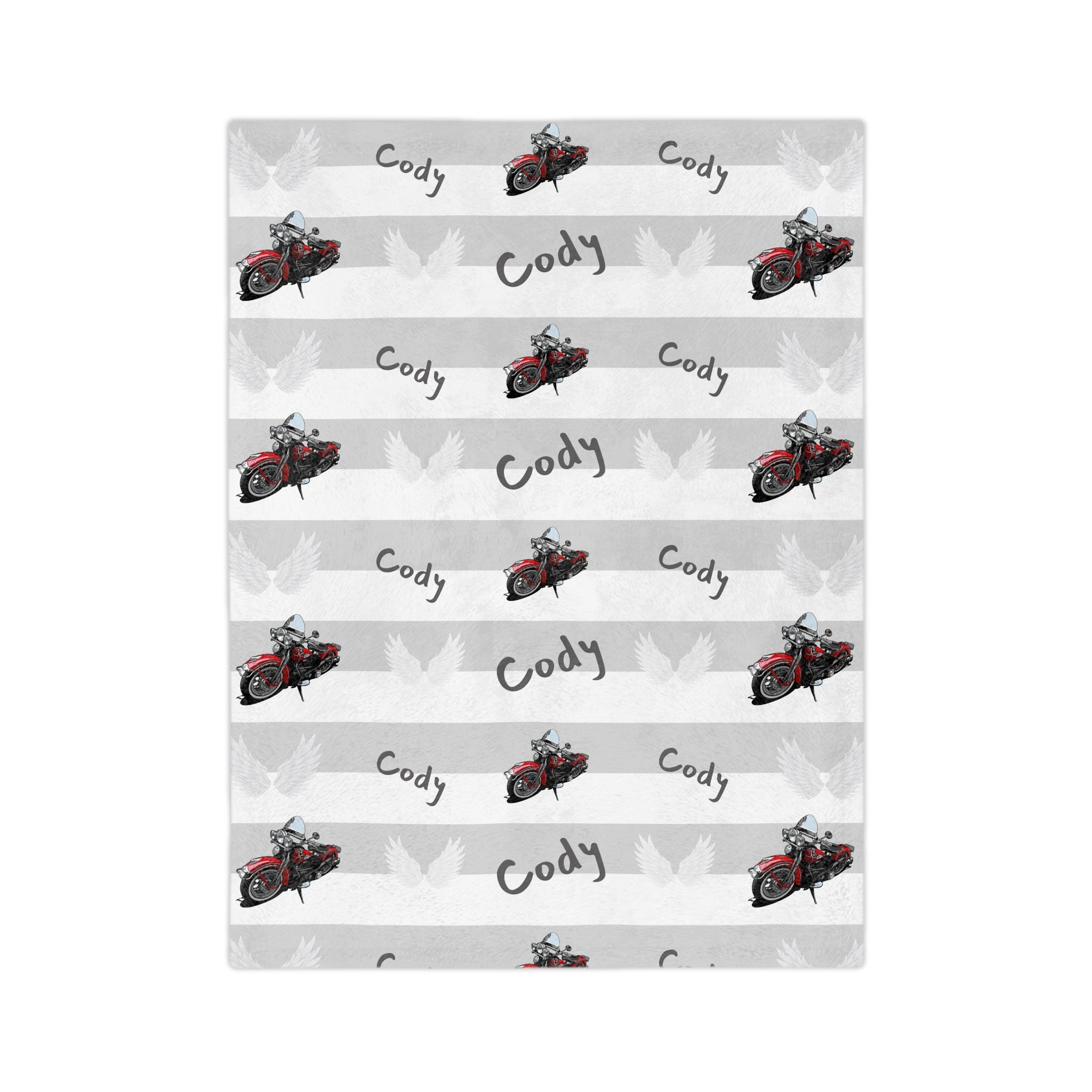 Amazingly soft family blanket for the motorcycle lovers in your life. Personalize with child name and great for all ages. Ideal for baby blanket, college throw, or even a cozy couch snuggle blanket.