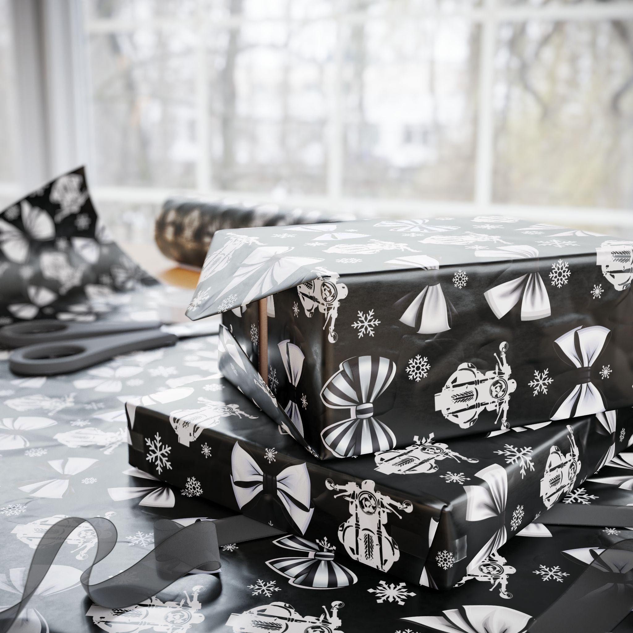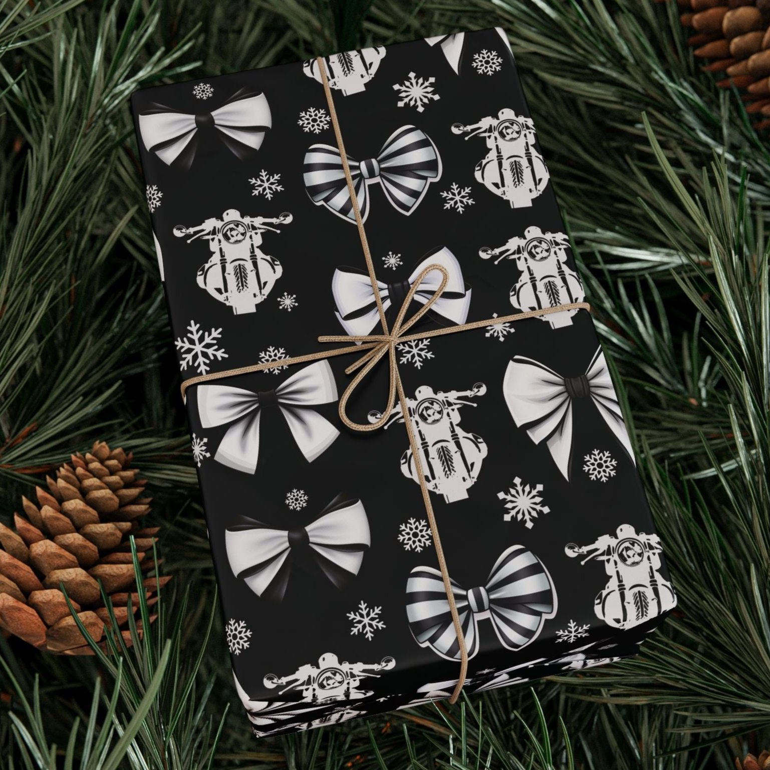 Make your holiday gifts stand out with our unique Motorcycle-themed Gift Wrapping Paper! This black wrapping paper features a charming blend of Christmas coquette bows and motorcycles, designed in a cottage core style, perfect for motorcycle enthusiasts and lovers of vintage-inspired holiday decor. Ideal for Christmas or any special occasion, this high-quality gift wrap adds a touch of personality to each gift, making it memorable and stylish.