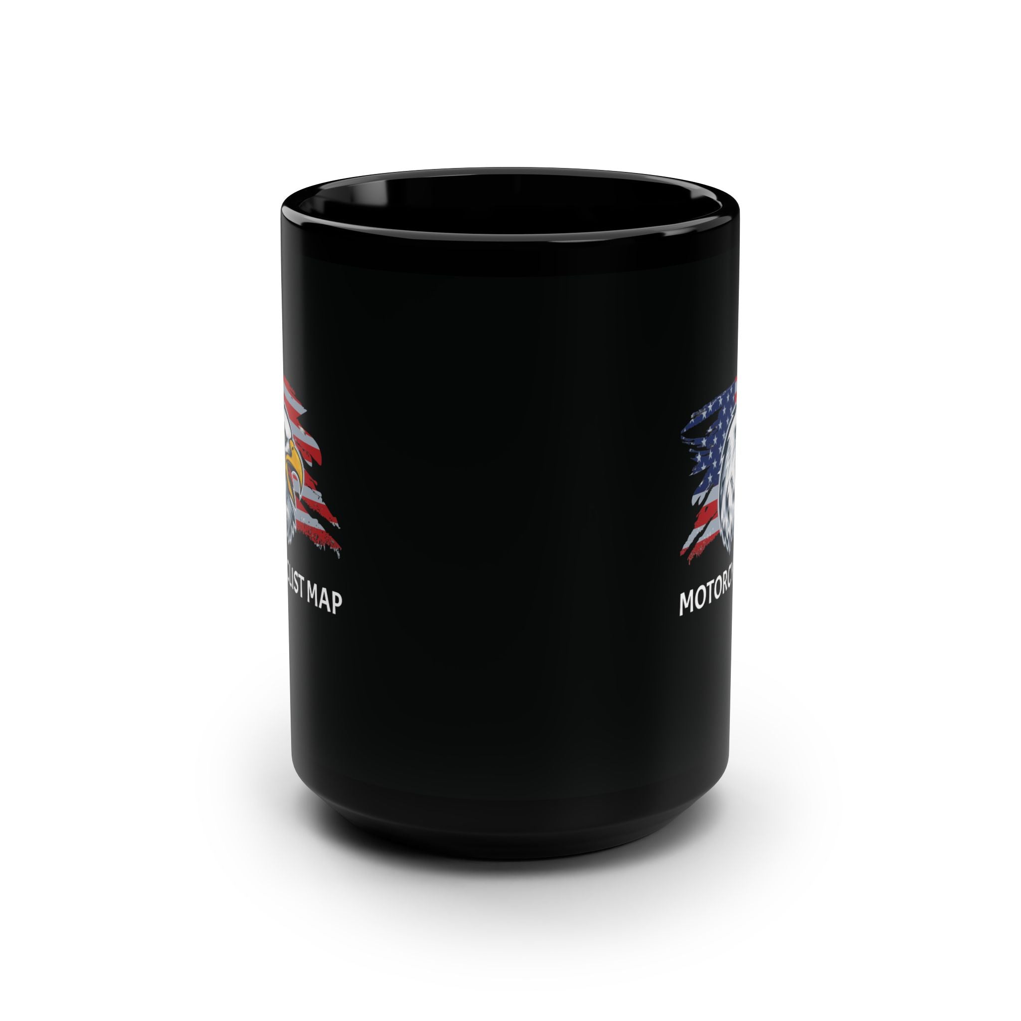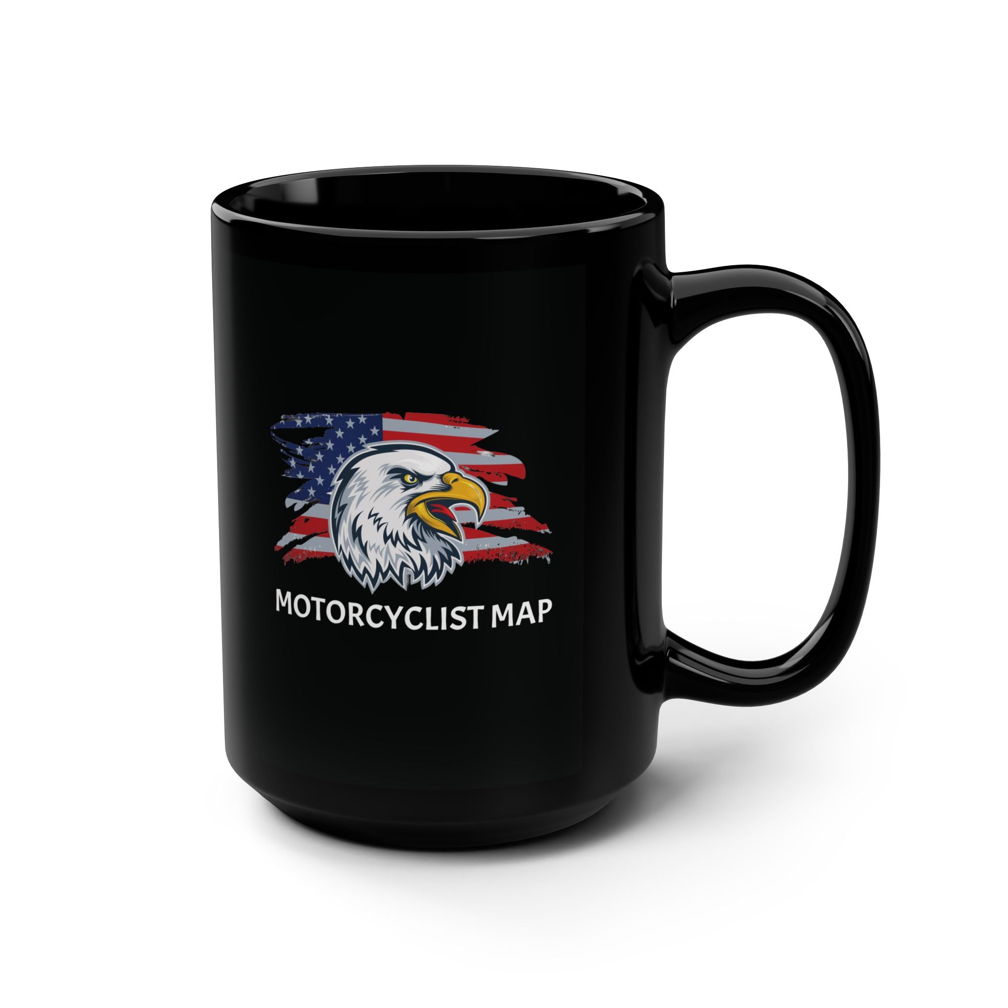 Show your pride for the Motorcyclist Map community with this sleek black ceramic coffee mug featuring an eye-catching design of an American Eagle head with an American flag backdrop and the bold text 'Motorcycle Map.' Representing a vast network of motorcycle riders on both two and three wheels, this mug is perfect for enjoying your favorite beverage while showcasing your love for riding and community support. Durable and stylish, it's a great addition to your home, office, or garage—perfect for connecting with fellow riders who share their traveling experiences and advice