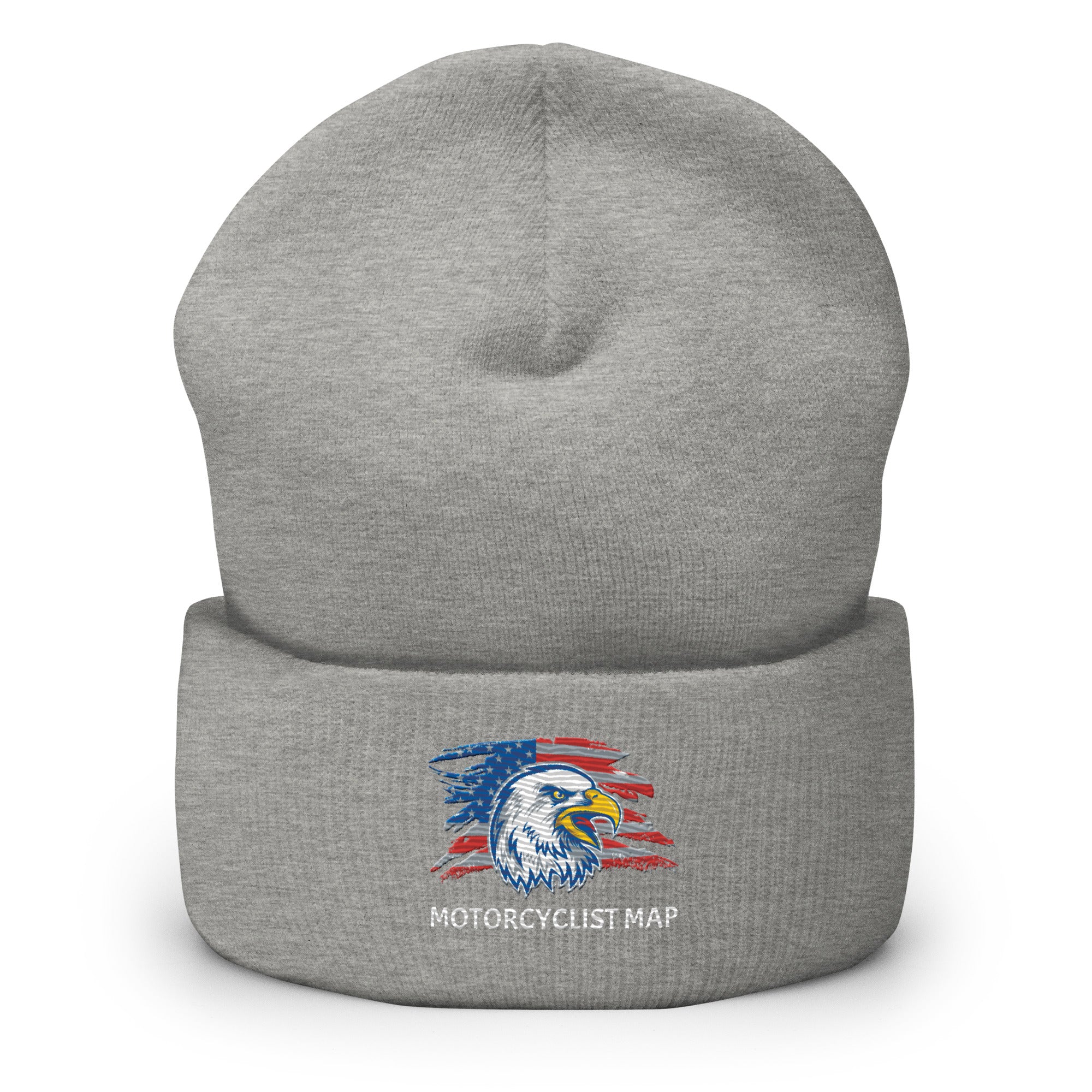 Stay warm and ride in style with our Motorcyclist Map Cuffed Beanie Hat, featuring an embroidered American Eagle head with an American flag backdrop and the words "Motorcycle Map." Perfect for both two and three-wheel riders, this beanie represents the vibrant Motorcyclist Map community—a group of passionate bikers who share travel experiences, road tips, and support for fellow riders. Whether you're cruising on your motorcycle or looking for the perfect accessory to show your love for the riding lifestyle, this beanie is a must-have!