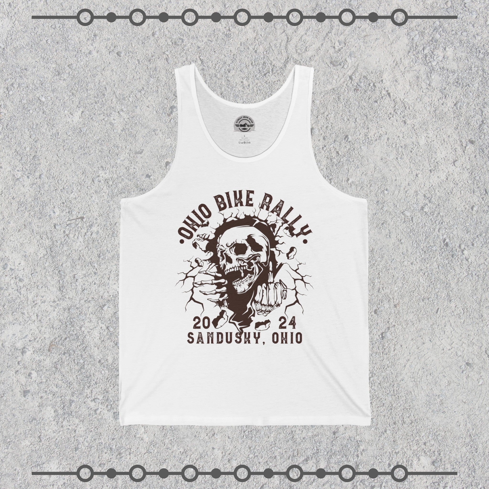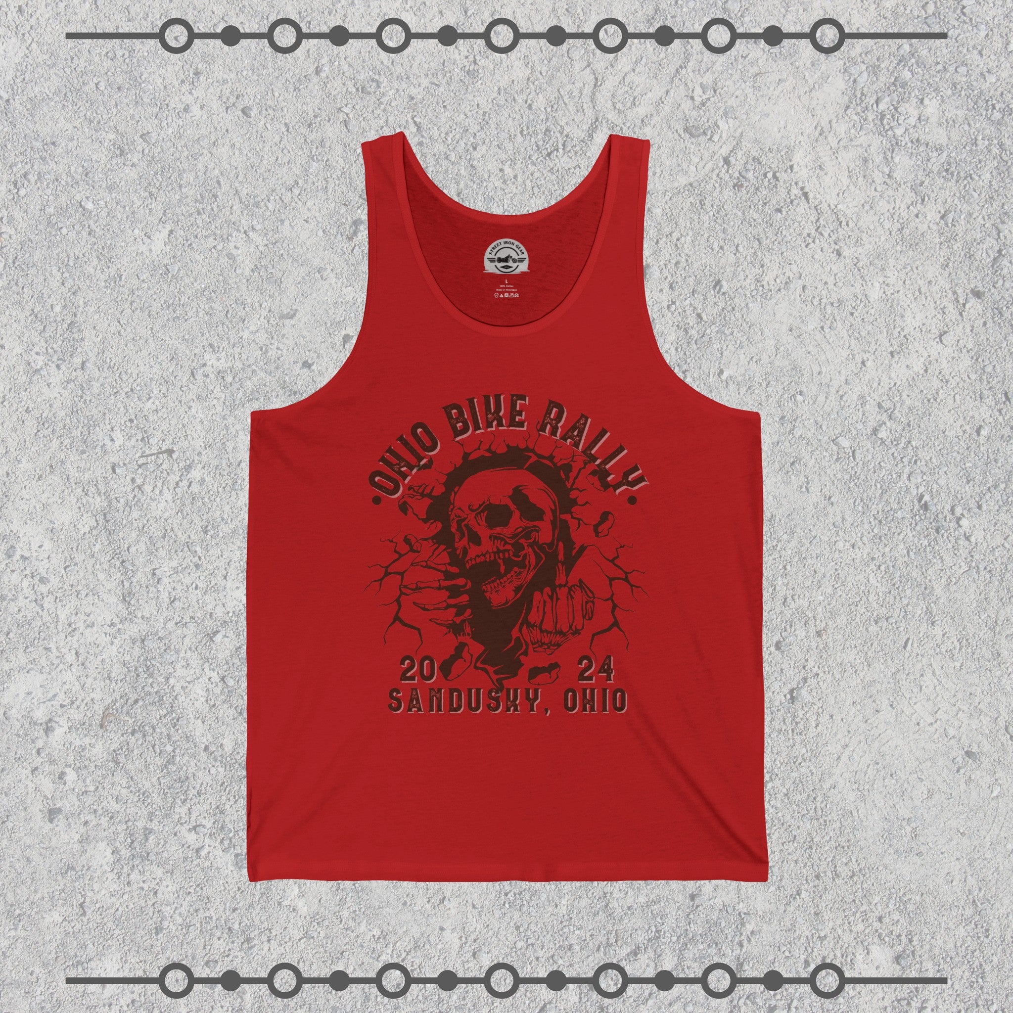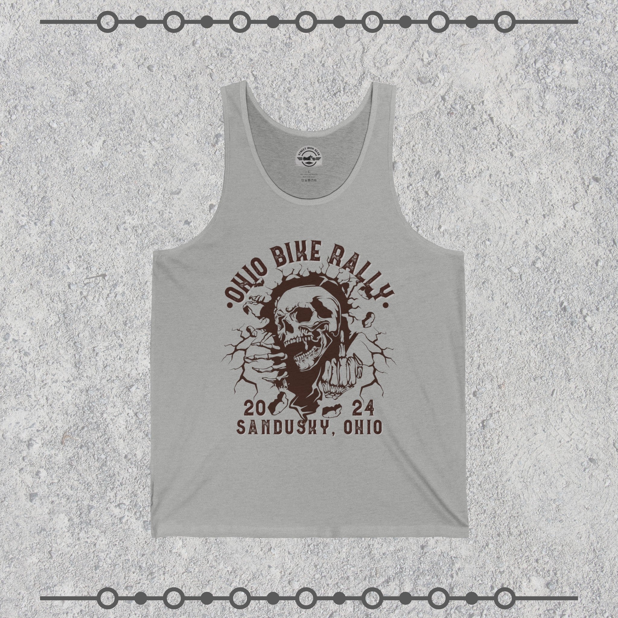 Step into the wild heart of biking culture with Street Iron Gear's Ohio Bike Rally 2024 Jersey Tank, where a monochrome skull tears through the fabric amidst a backdrop of dynamic cracks, boldly declaring the Ohio Bike Rally in Sandusky, Ohio. This arresting design captures the essence of thrill and freedom. Perfect for those who live for the roar of engines and the call of the open road, this tee is your ticket to standing out at Ohio's premier motorcycle event.