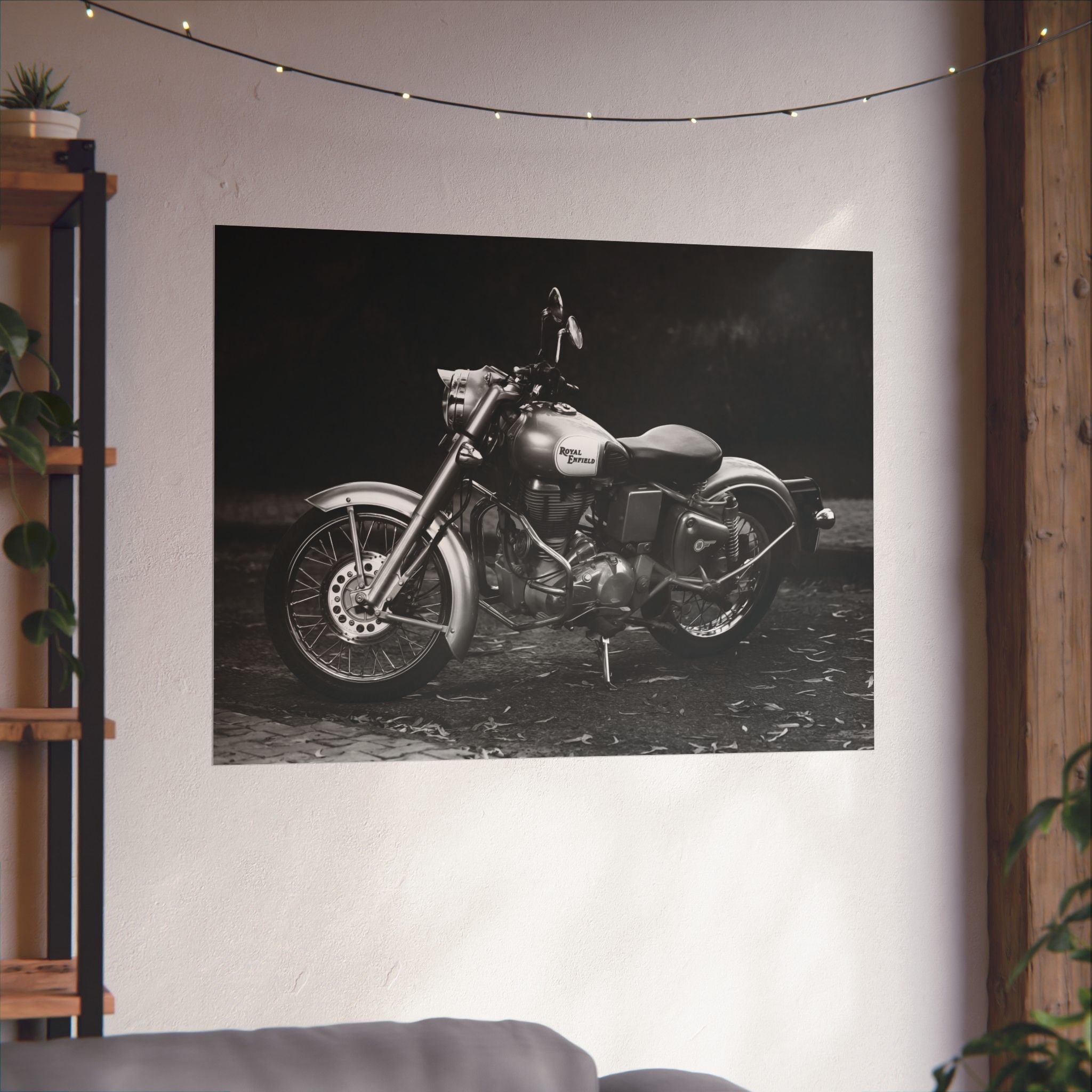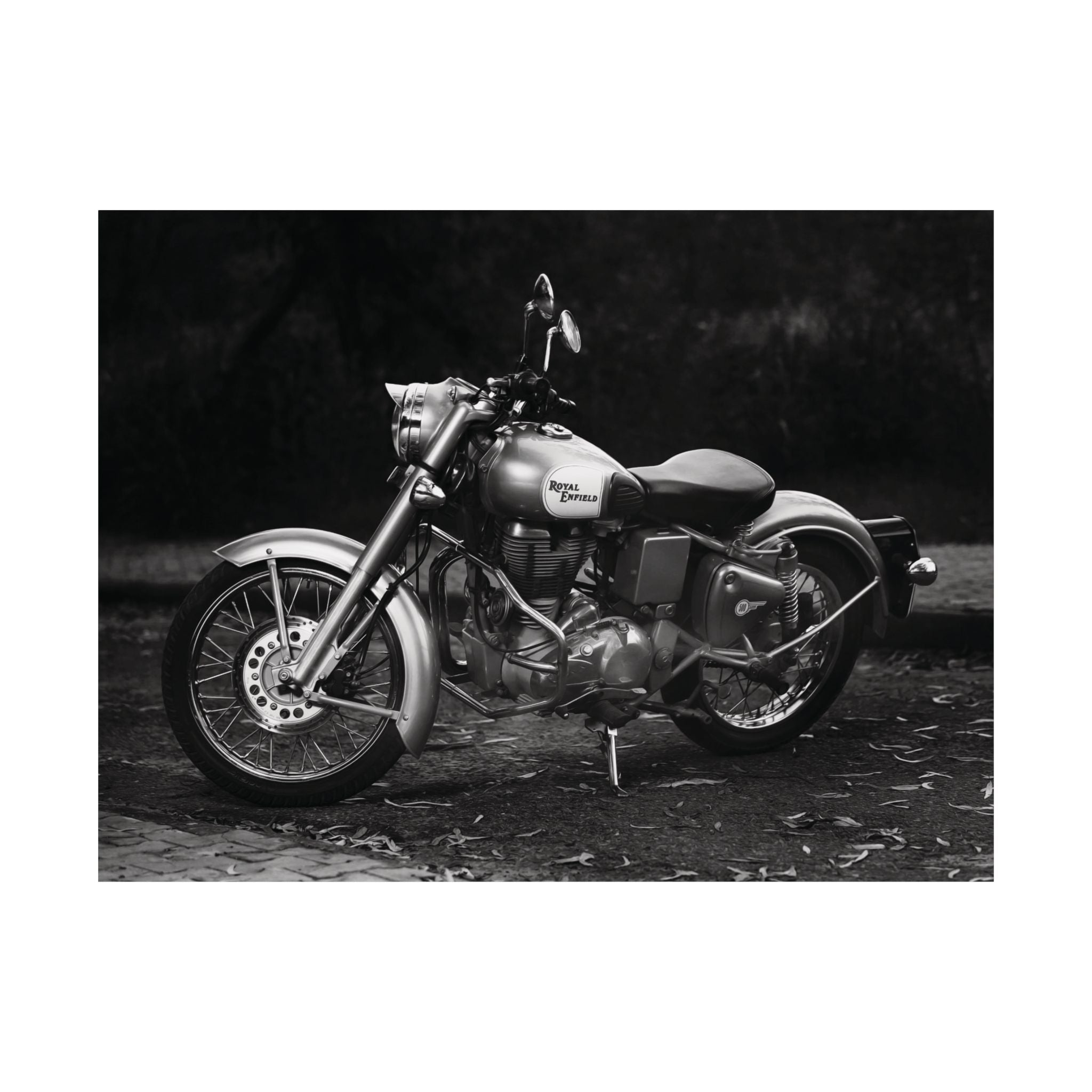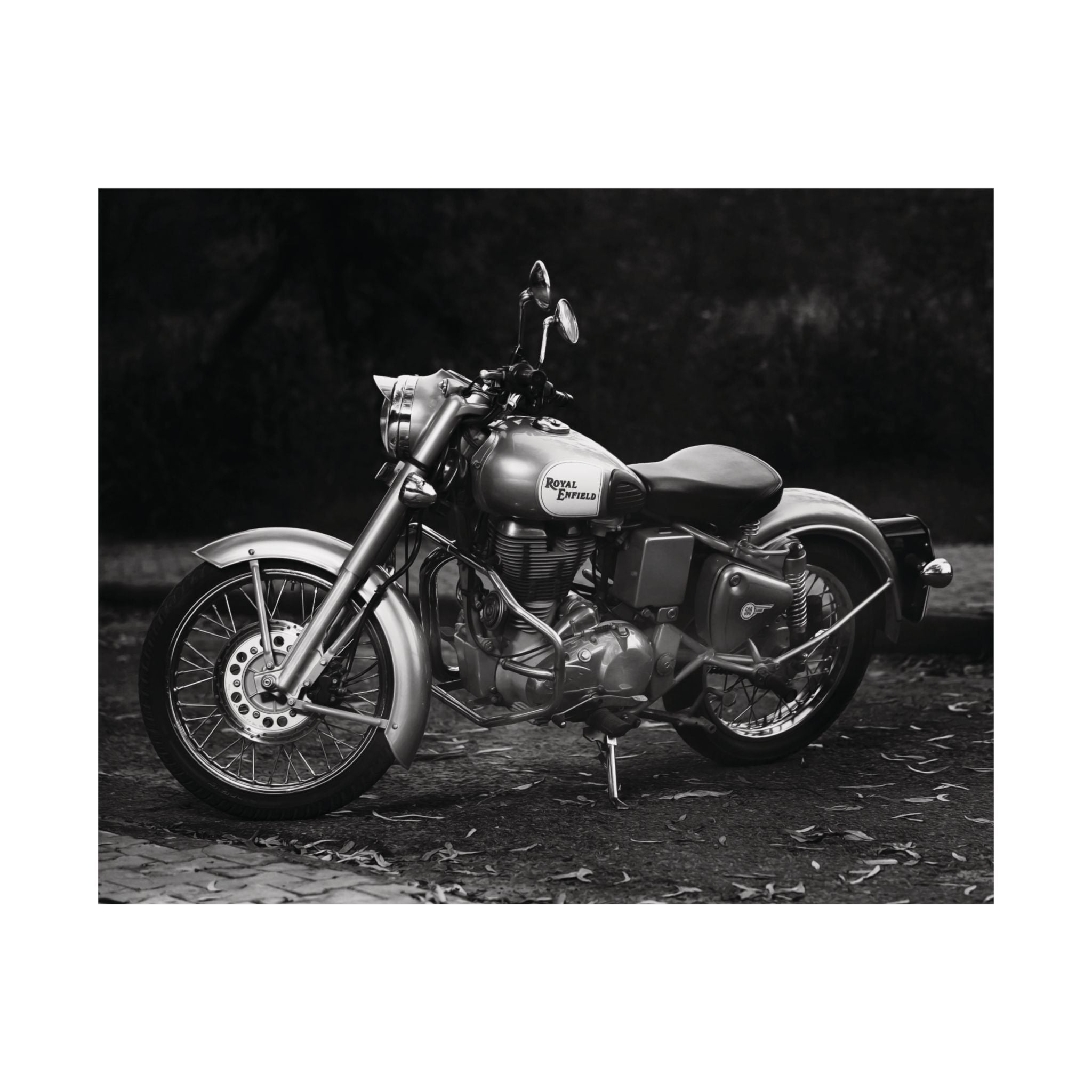 Elevate your space with this stunning Royal Enfield Motorcycle Matte Paper Print, featuring a striking black and white image of a Royal Enfield cruiser parked on a gravel road against a dark, moody background. Printed on high-quality matte paper, this premium motorcycle wall art captures every fine detail with rich contrast, making it the perfect statement piece for motorcycle enthusiasts, vintage bike lovers, and Royal Enfield fans. Whether displayed in your home, garage, office, or man cave, this timeless print adds a bold, classic touch to any decor. A must-have for collectors and the perfect gift for bikers who live for the open road!