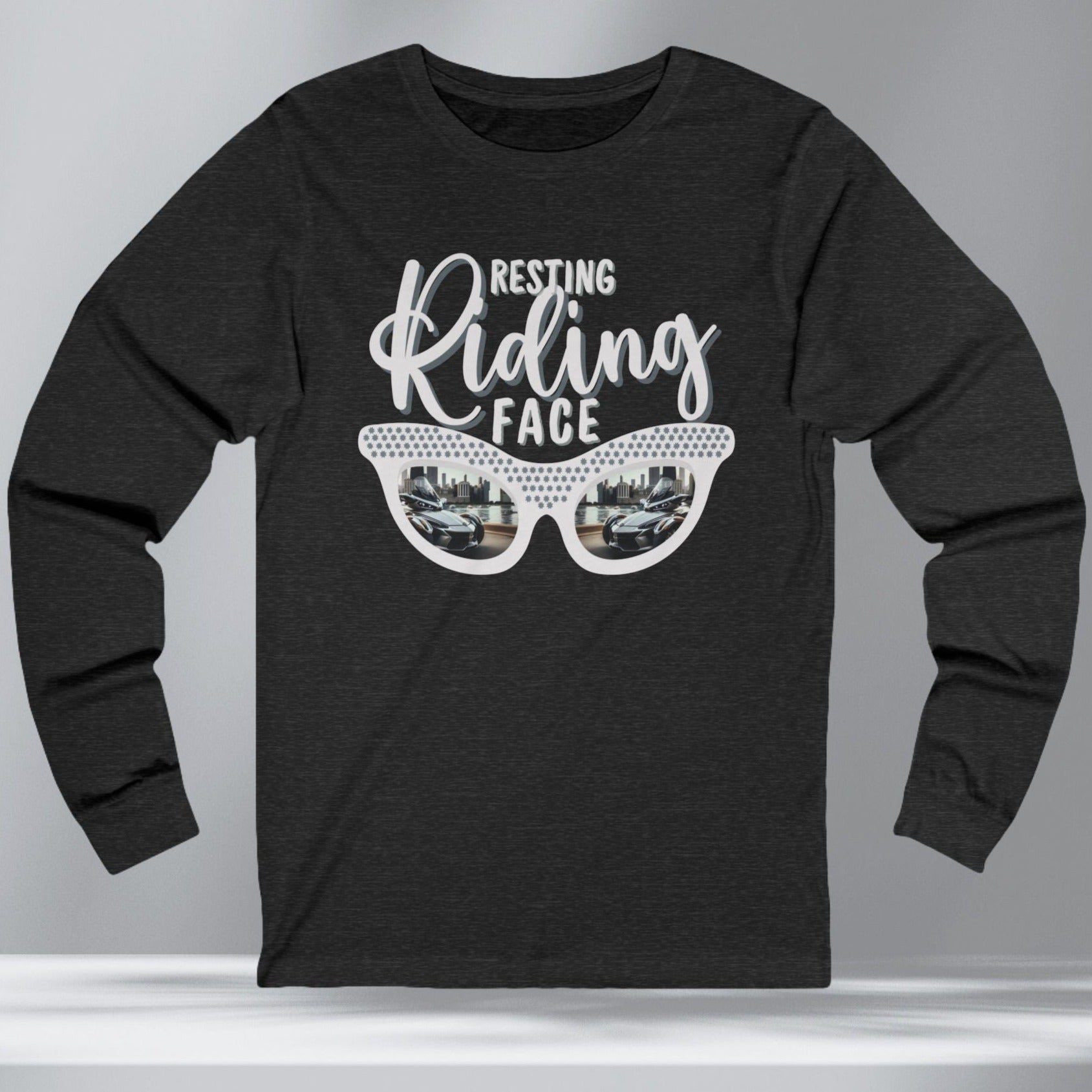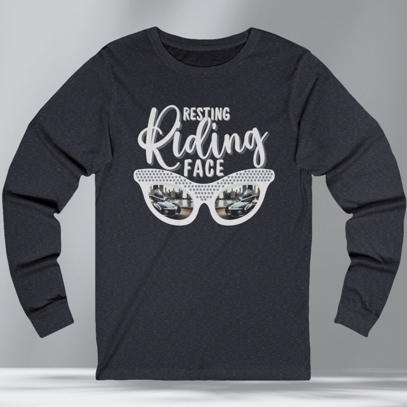 Embrace your passion for riding with our "Resting Riding Face" women's long sleeved T-shirt, featuring a stylish graphic of sunglasses reflecting a Can-Am Spyder Graphic by an urban waterway. Crafted for comfort and durability, this shirt is perfect for enthusiasts who live for the thrill of the open road. Ideal for Pinterest-worthy fashion and SEO trends, it's a must-have for every rider's wardrobe.