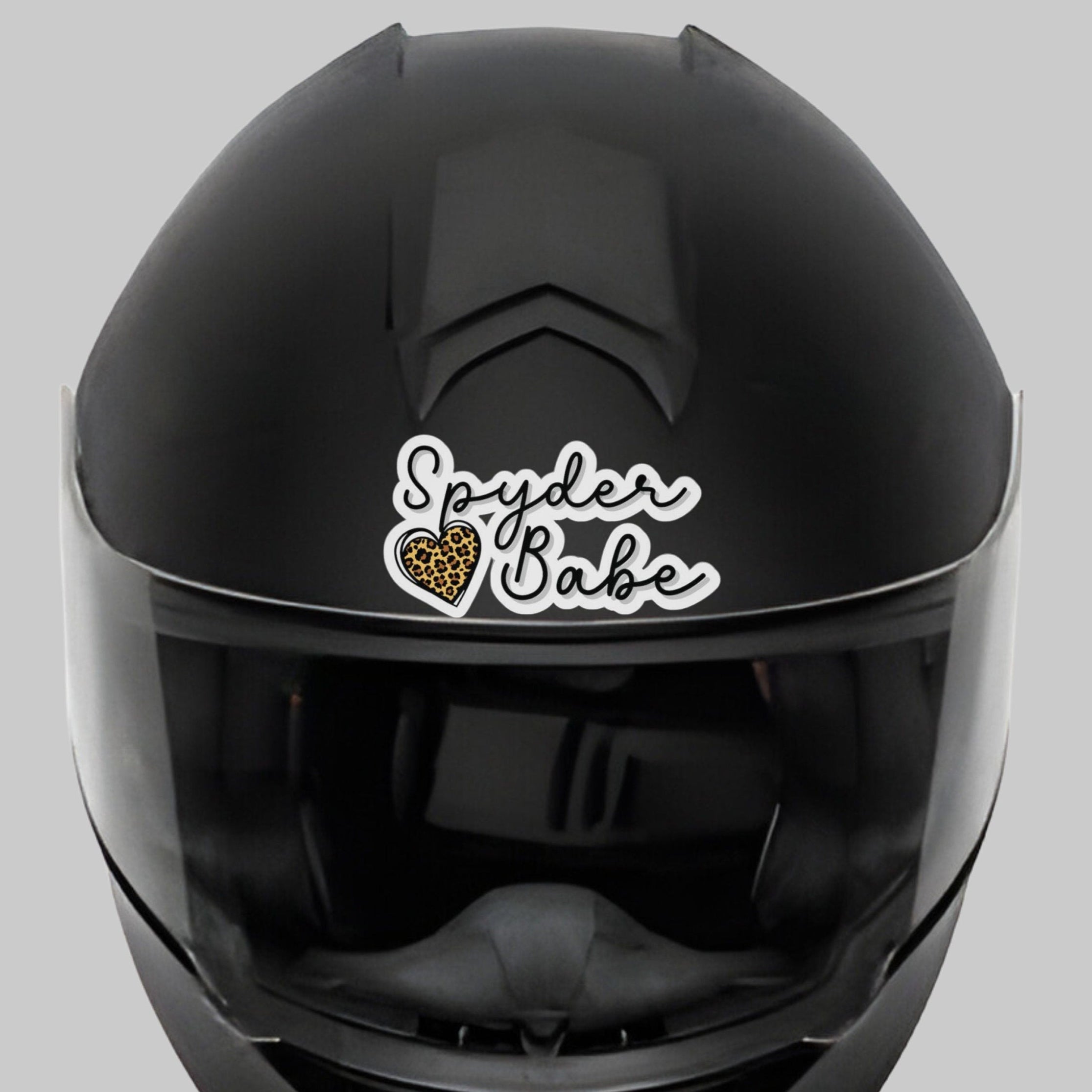 Add fun to your motorcycle helmet or fender by proudly displaying your die cut Spyder Babe Motorcycle Sticker on your helmet. Great motorcycle gift for the Spyder lovers in your life.