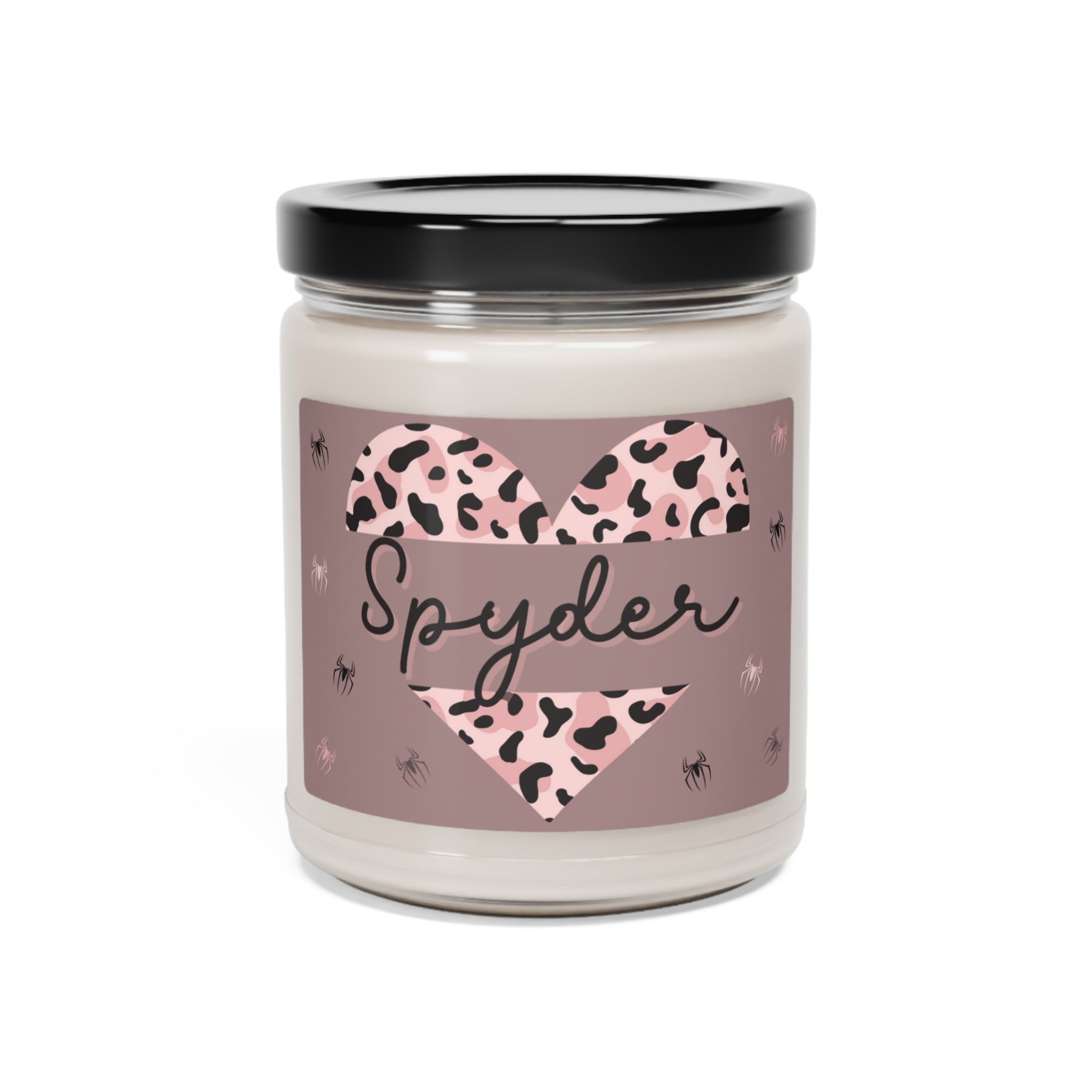Surprise your loved one with this unique and beautiful Motorcycle Themed Scented Soy Candle. Spyder Love in animal print messaging on the label
