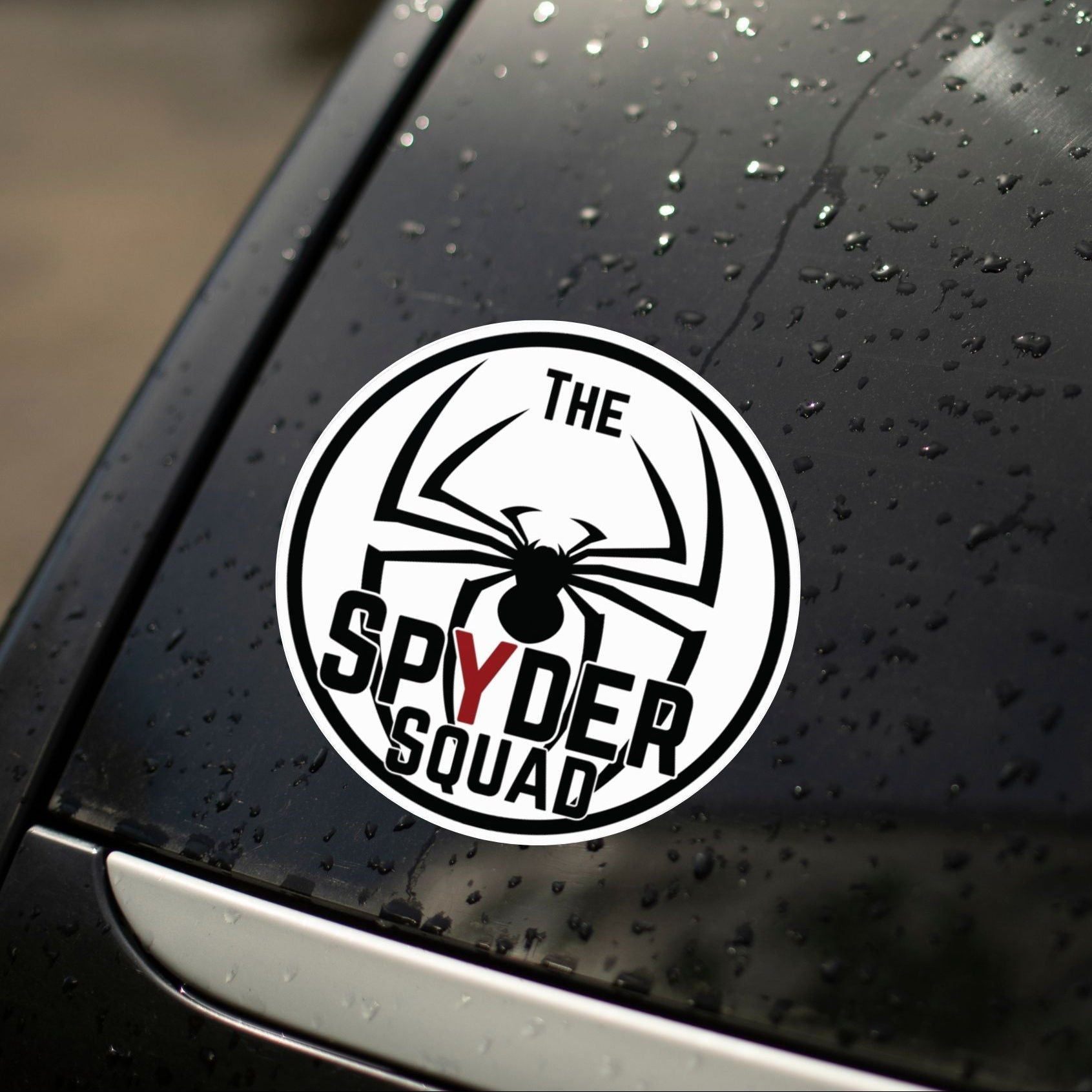 Join the pack with our round Can-Am Spyder Decal, featuring a bold black, red, and white design with a striking spider graphic and the text "The Spyder Squad." This high-quality, weatherproof decal is perfect for showcasing your Can-Am Spyder pride on your motorcycle helmet, bike luggage, mobile phone, laptop, or vehicle. Available in multiple sizes, this versatile decal is easy to apply and built to last, making it a must-have for any Can-Am enthusiast. Show your loyalty to The Spyder Squad wherever you go!