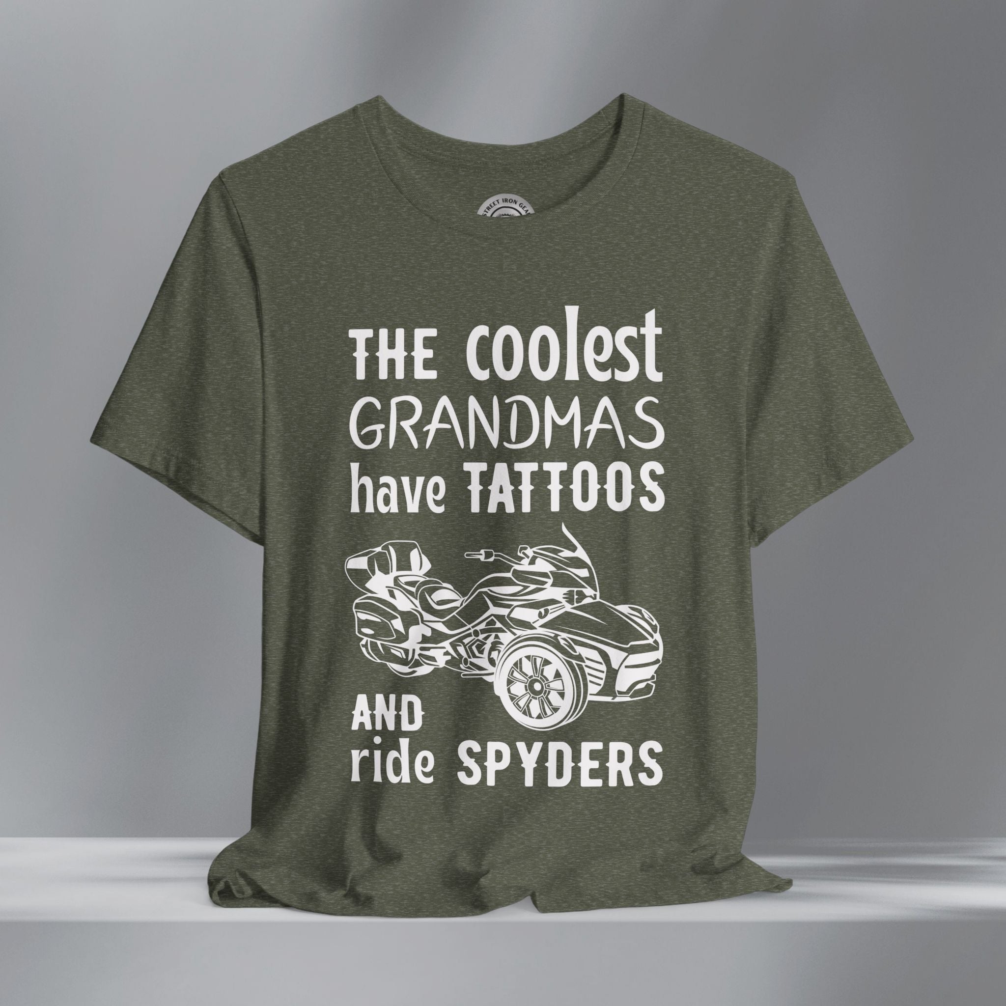 Celebrate bold style and fearless spirit with our Can-Am Spyder F3 themed T-shirt designed just for the coolest grandmas on the road! This eye-catching tee features custom Can-Am Spyder F3 graphics with a fun, empowering message that celebrates women who ride and proudly wear their ink. Perfect for riding days, rally events, or casual wear, this soft, high-quality shirt makes a great gift for Spyder riders, especially the proud grandmas who live life full throttle.