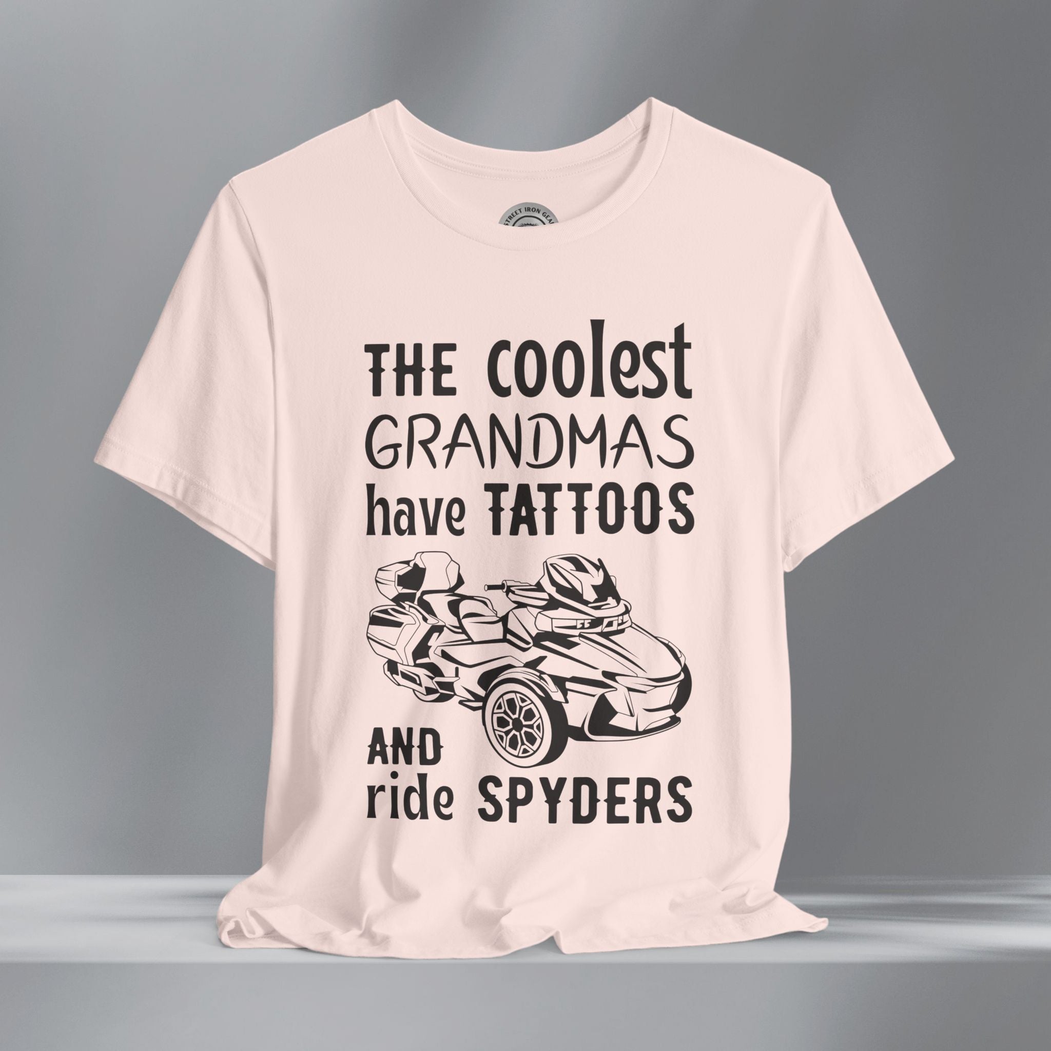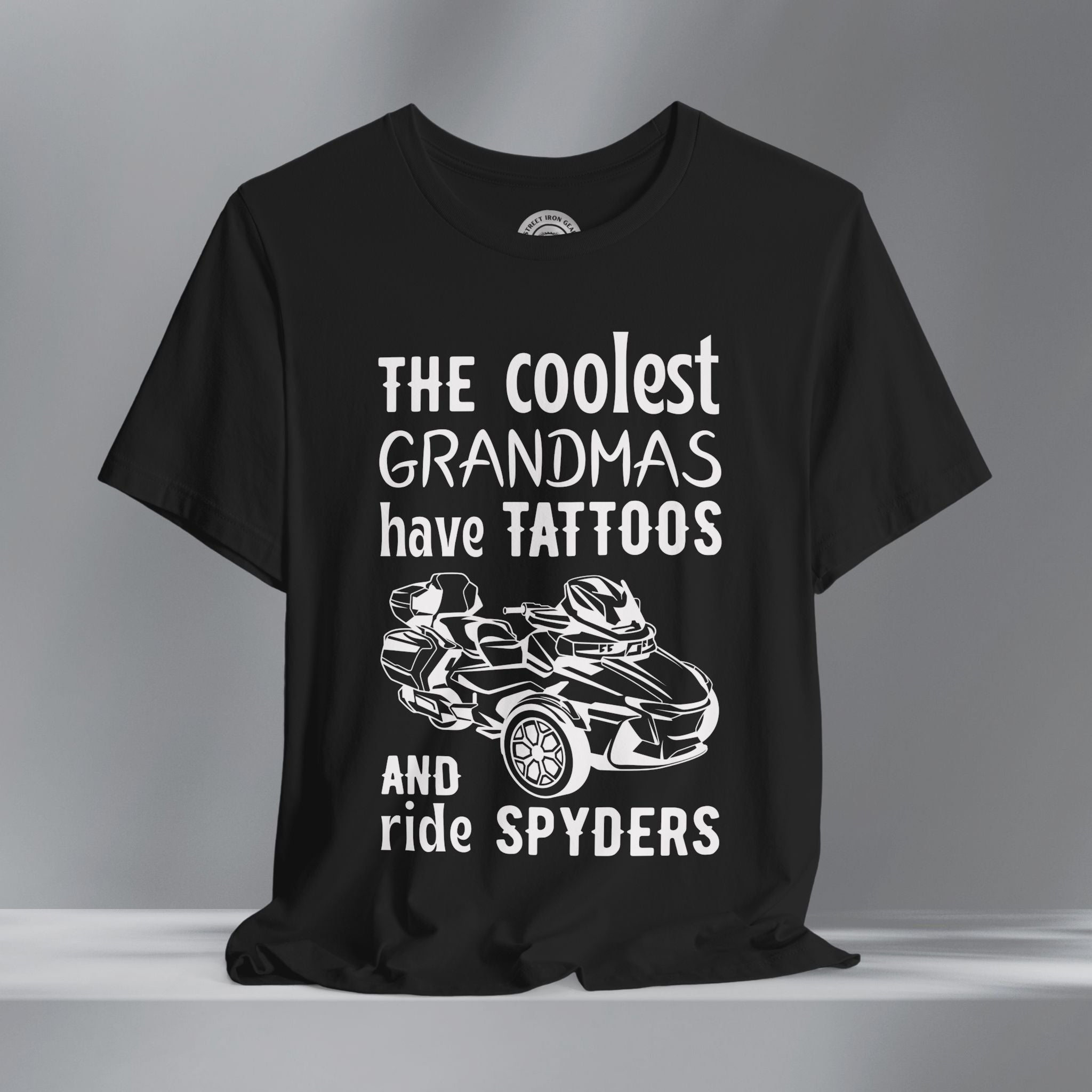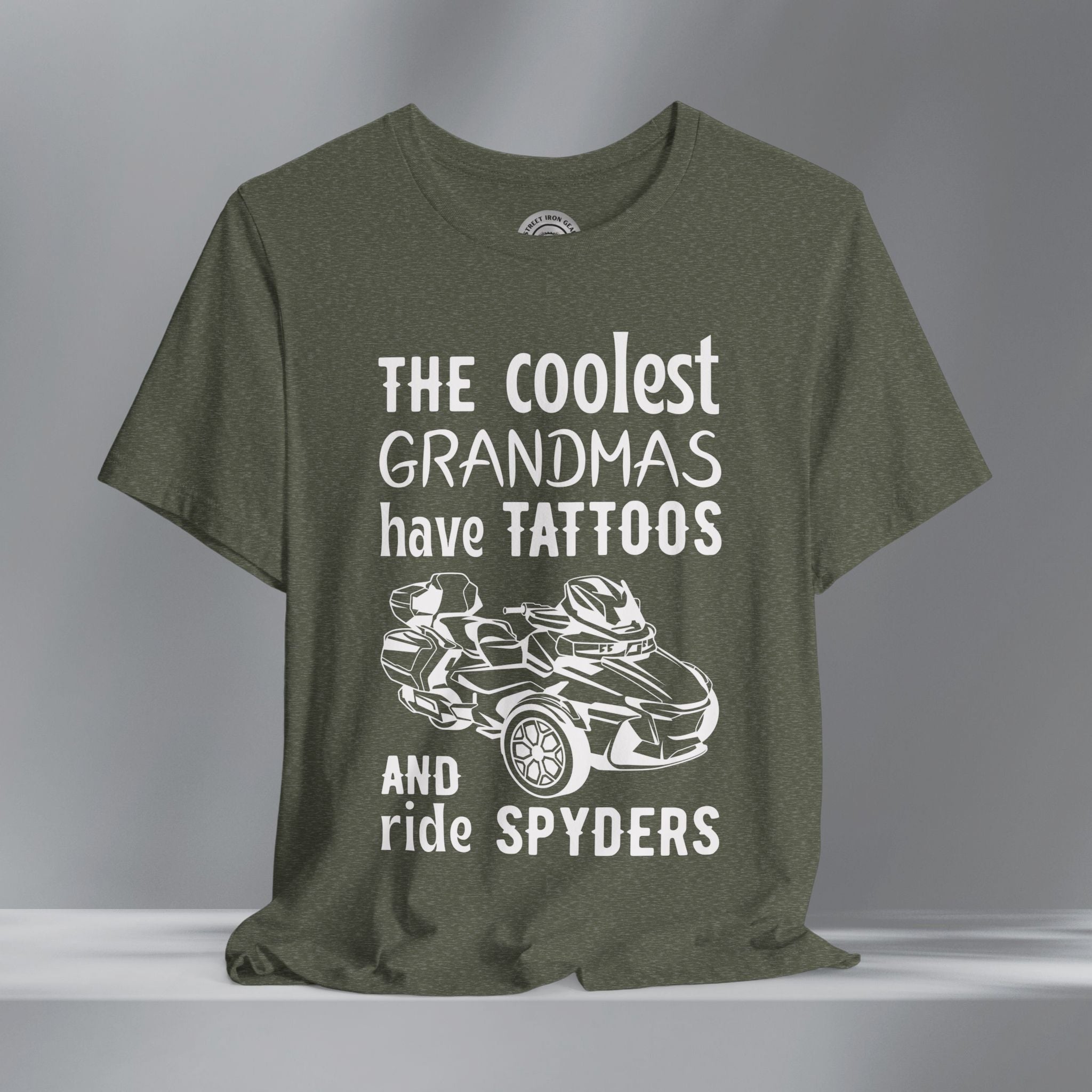 Celebrate bold style and three-wheel pride with this Can-Am Spyder RTL themed T-shirt, perfect for proud grandmas who ride! Featuring eye-catching Can-Am Spyder RTL graphics and a fun, empowering message about cool grandmas with tattoos and a love for the open road, this shirt is designed to turn heads. Made from soft, high-quality fabric, it’s ideal for everyday wear, rally weekends, or showing off your unique style in the garage or on the go. A great gift for Spyder riders, especially those who embrace their biker spirit at any age.