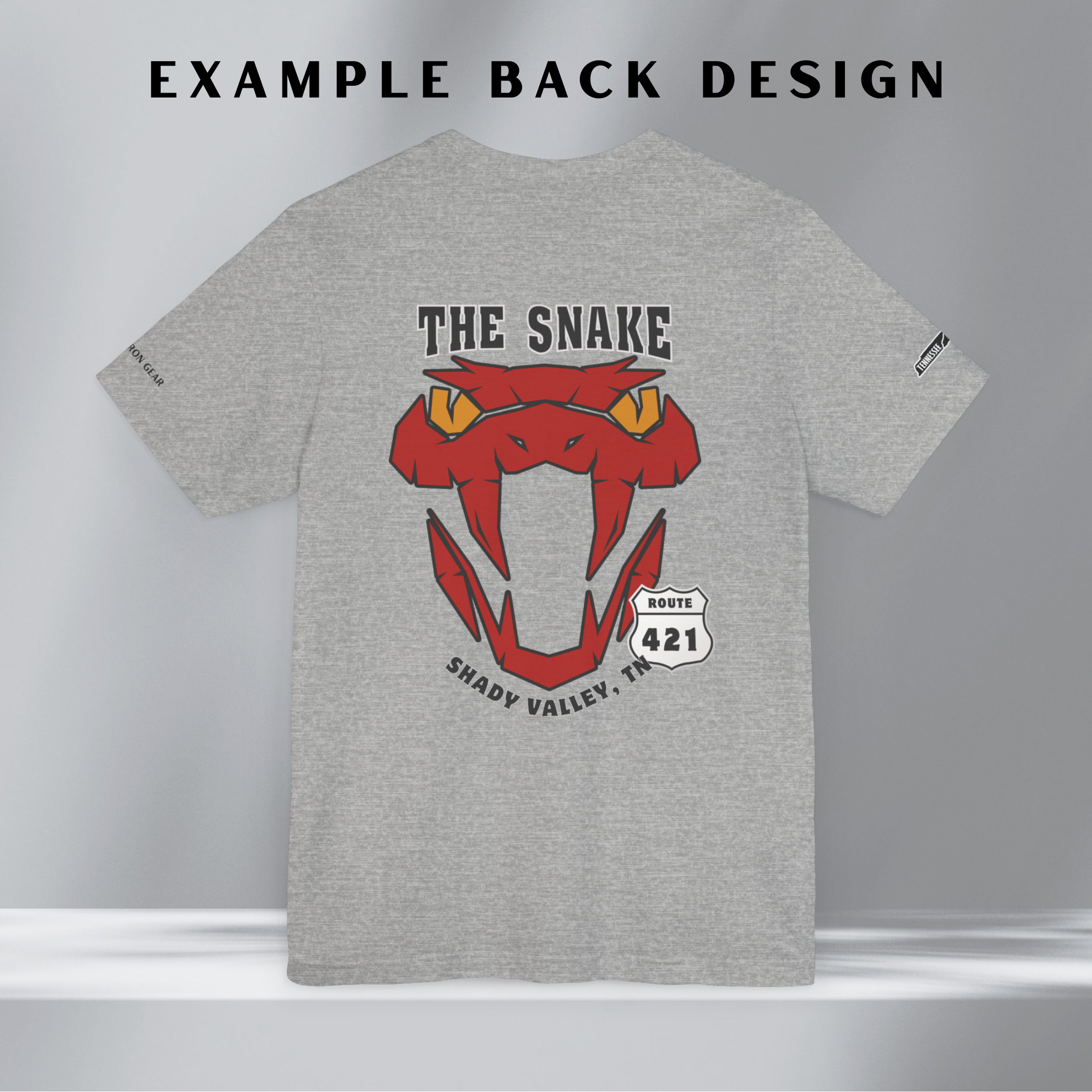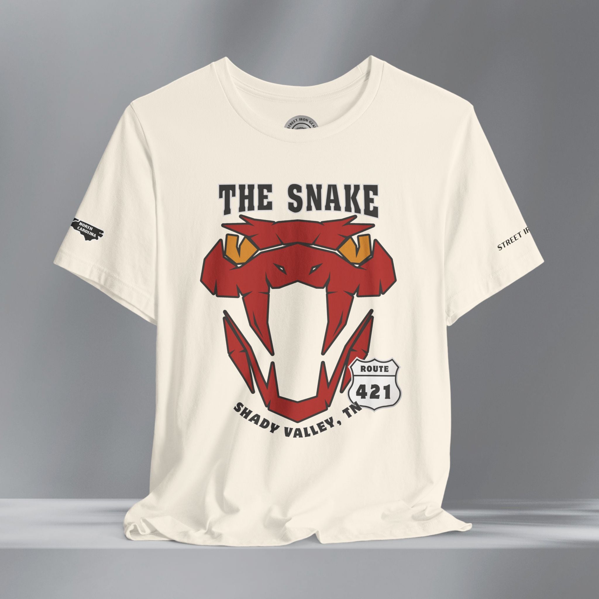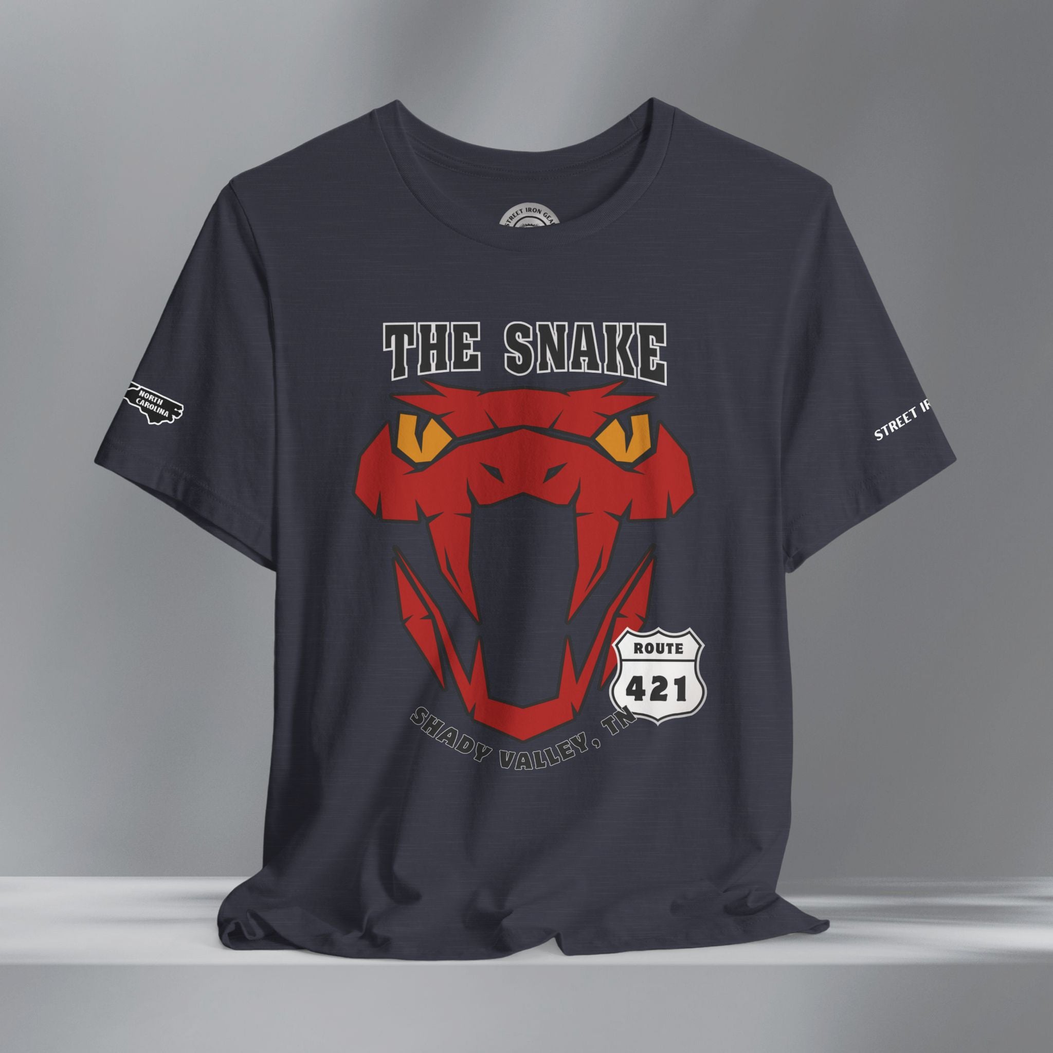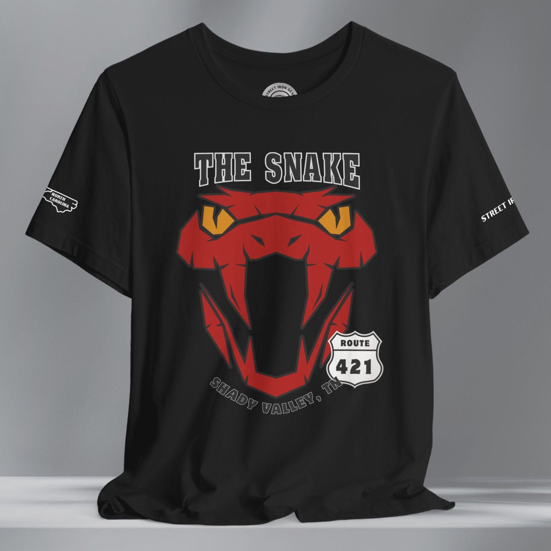 Ride the legend in style with our “The Snake Tennessee Route 421” Motorcycle T-Shirt, designed for men and women who live for the curves of Shady Valley, TN. This bold tee captures the thrill of one of the most iconic motorcycle routes in the U.S., featuring a fierce snake graphic with sharp fangs in red, orange, and gray, and a state route sign that pops with rugged, high-contrast details. Whether you choose front or back print, each shirt includes a TN/NC state outline on the right sleeve and Street Iron Gear branding on the left sleeve, adding regional pride and authenticity to your look. Perfect for rally weekends, long rides, or everyday wear, this tee is a must-have for any rider who’s conquered or dreams of riding The Snake.