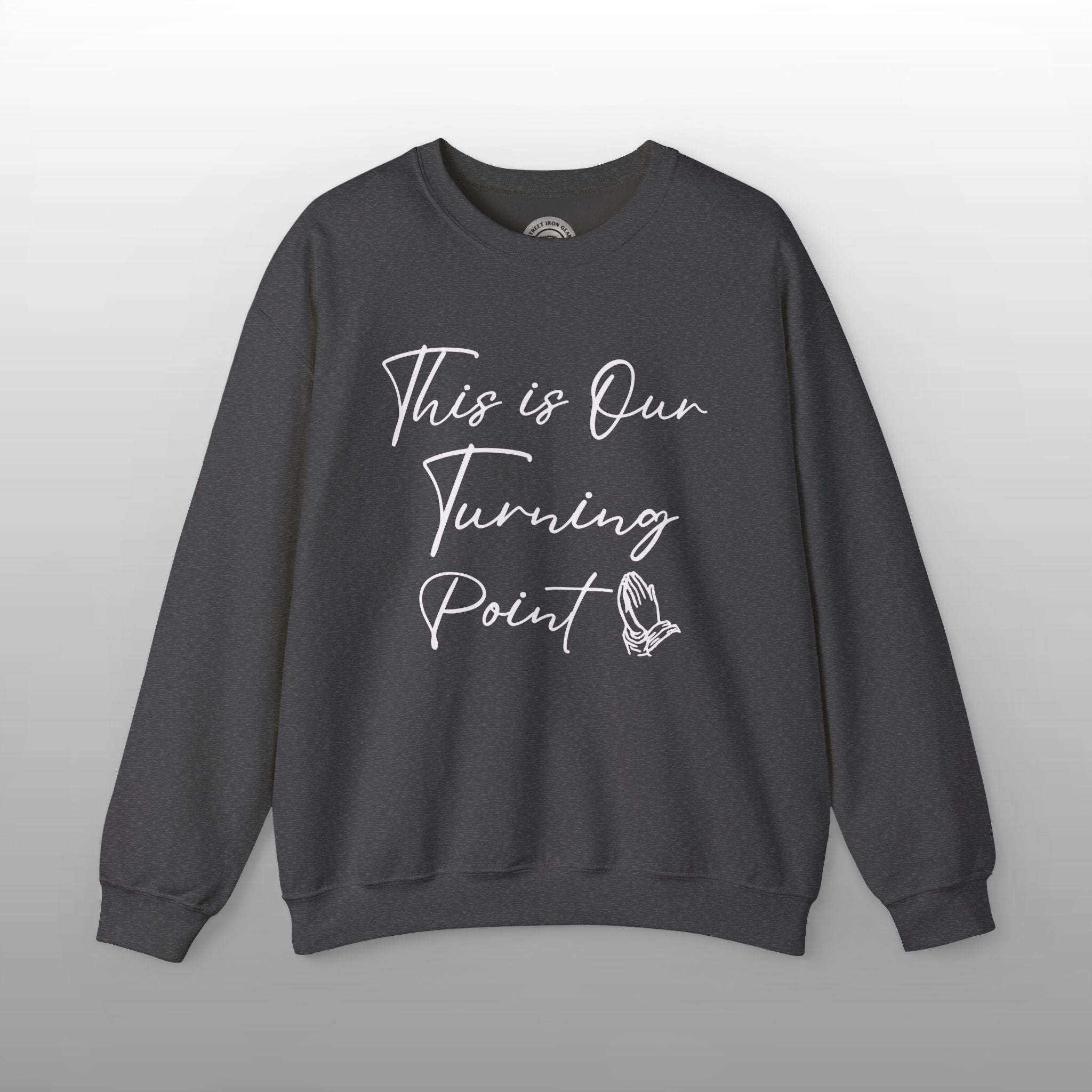 Show your support for American liberty and faith with this comfortable patriotic pullover sweatshirt. This design carries a powerful message for the nation, featuring the meaningful text "This is our Turning Point," a well-known sentiment associated with the political movement and figures like Charlie Kirk. The graphic includes a subtle yet poignant depiction of clasped hands, symbolizing the role of prayer and faith in the fight for freedom. Made from a cozy, high-quality fabric, this sweatshirt is perfect for political rallies, casual wear, or as a thoughtful gift for any conservative American, Christian patriot, or supporter of the Turning Point movement. Wear your beliefs and join the conversation about America's future and the ongoing fight for Constitutional principles.