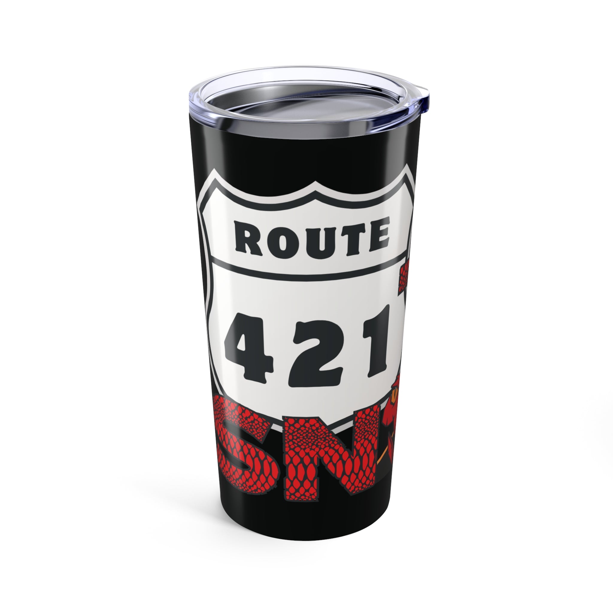 Take the twisties with you wherever you go with our “Ride the Snake Tennessee Route 421” 20 oz stainless steel travel mug—perfect for riders who’ve conquered the legendary curves of Shady Valley, TN. This motorcycle-themed travel tumbler features a bold wraparound design with a custom-scaled font, a stylized snake head replacing the “a” in “Snake,” and a rugged red and gray Tennessee Route 421 road sign. Designed to keep your drinks hot or cold for hours, this double-walled stainless steel mug is built for life on the road—whether you're carving turns or heading to work. Ideal for motorcycle riders, road trip lovers, or anyone who’s tackled The Snake, it also makes an awesome biker gift or rally souvenir.