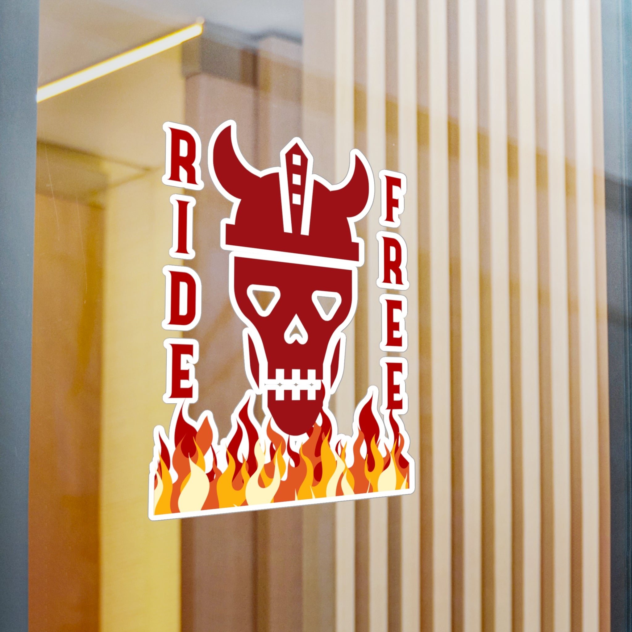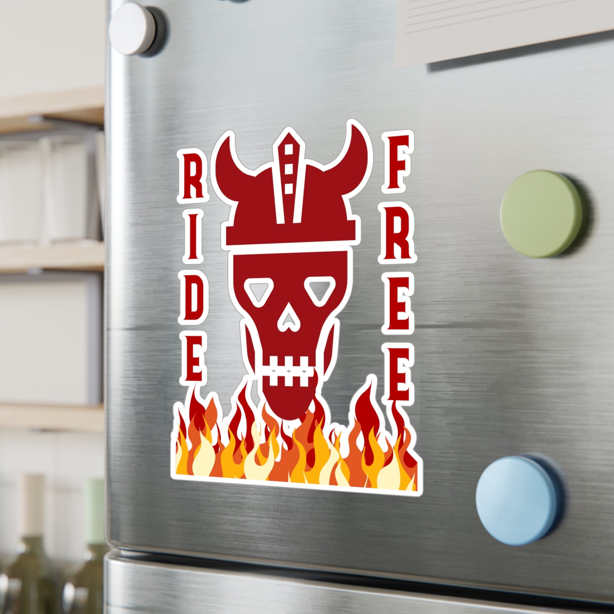 Unleash your inner warrior with this bold "Ride Free" motorcycle decal featuring a fierce Viking surrounded by flames. Perfect for customizing your bike, helmet, or gear, this high-quality sticker is designed to withstand the elements while showcasing your passion for freedom on the open road. Ideal for Viking enthusiasts, motorcycle riders, and anyone who lives by the motto "Ride Free." Add a touch of Viking spirit to your ride and stand out from the crowd with this unique, eye-catching decal.