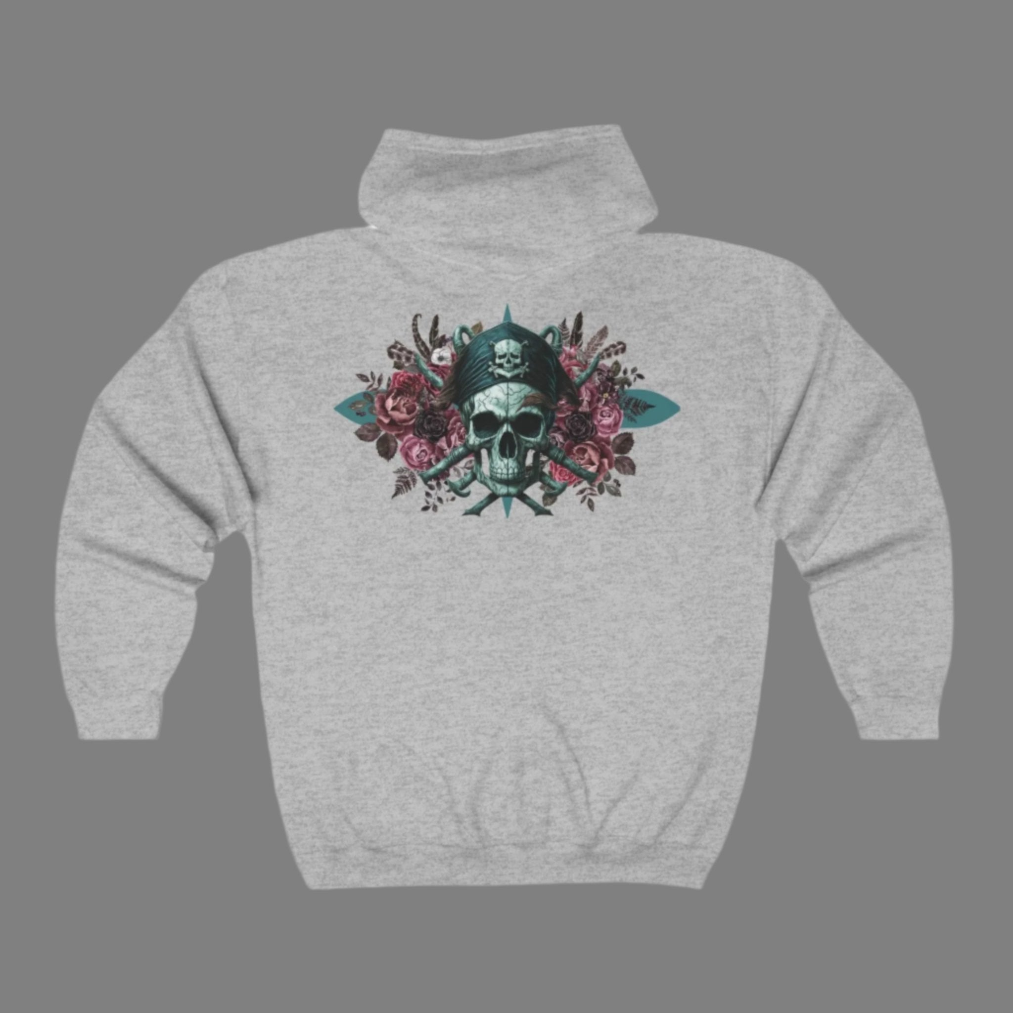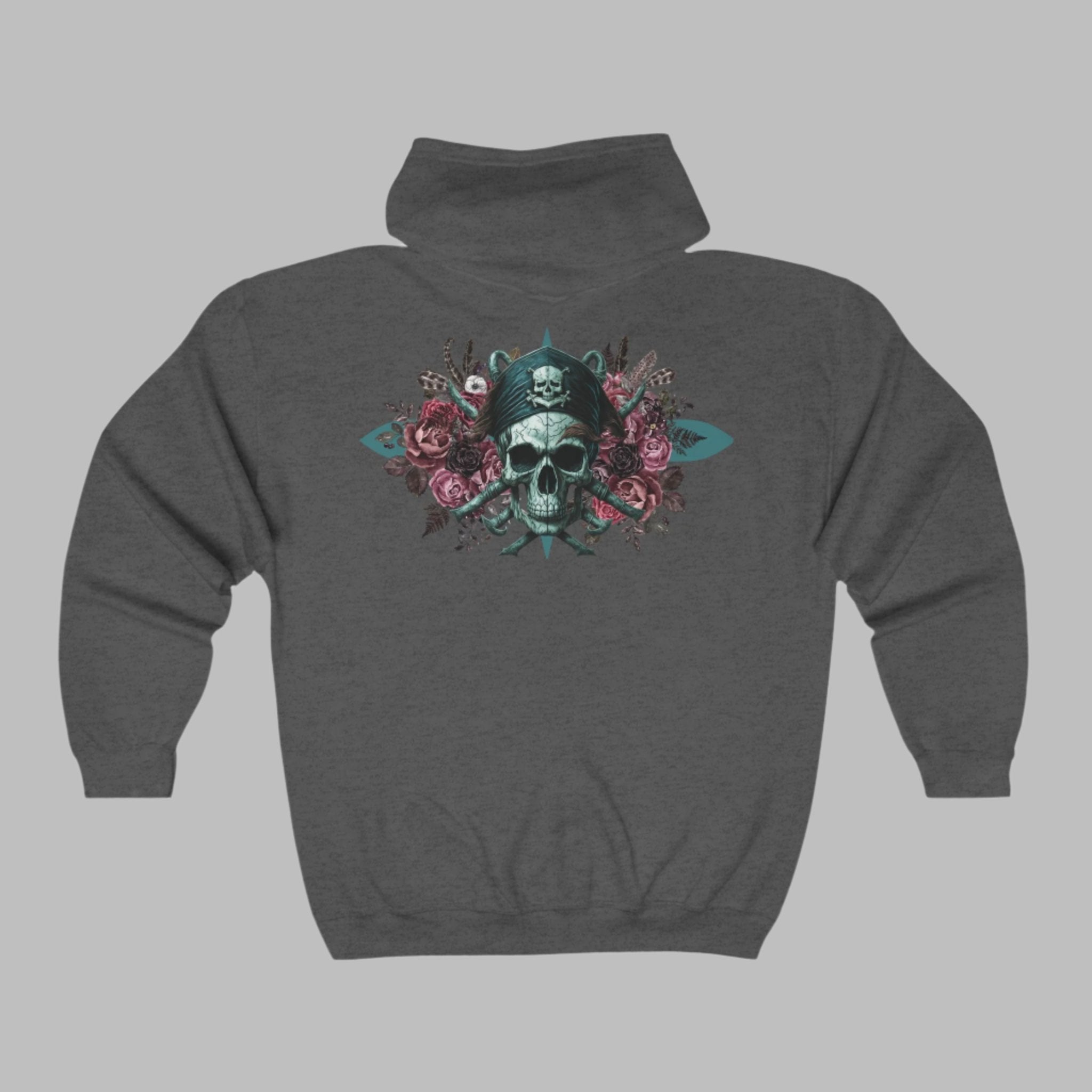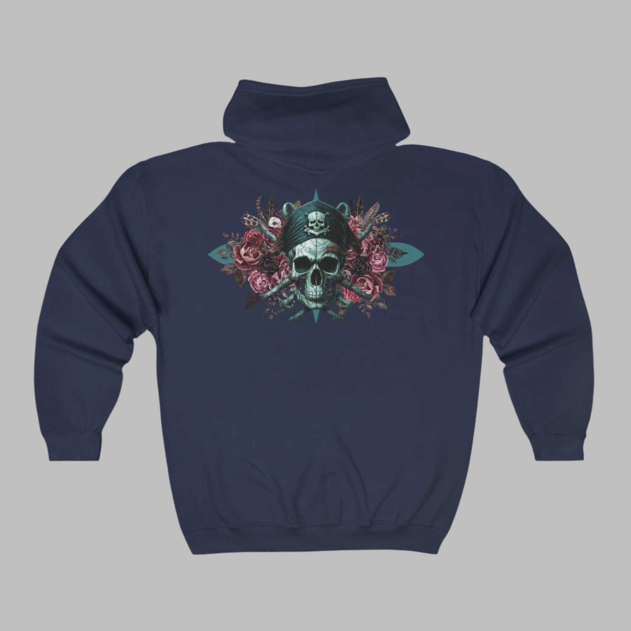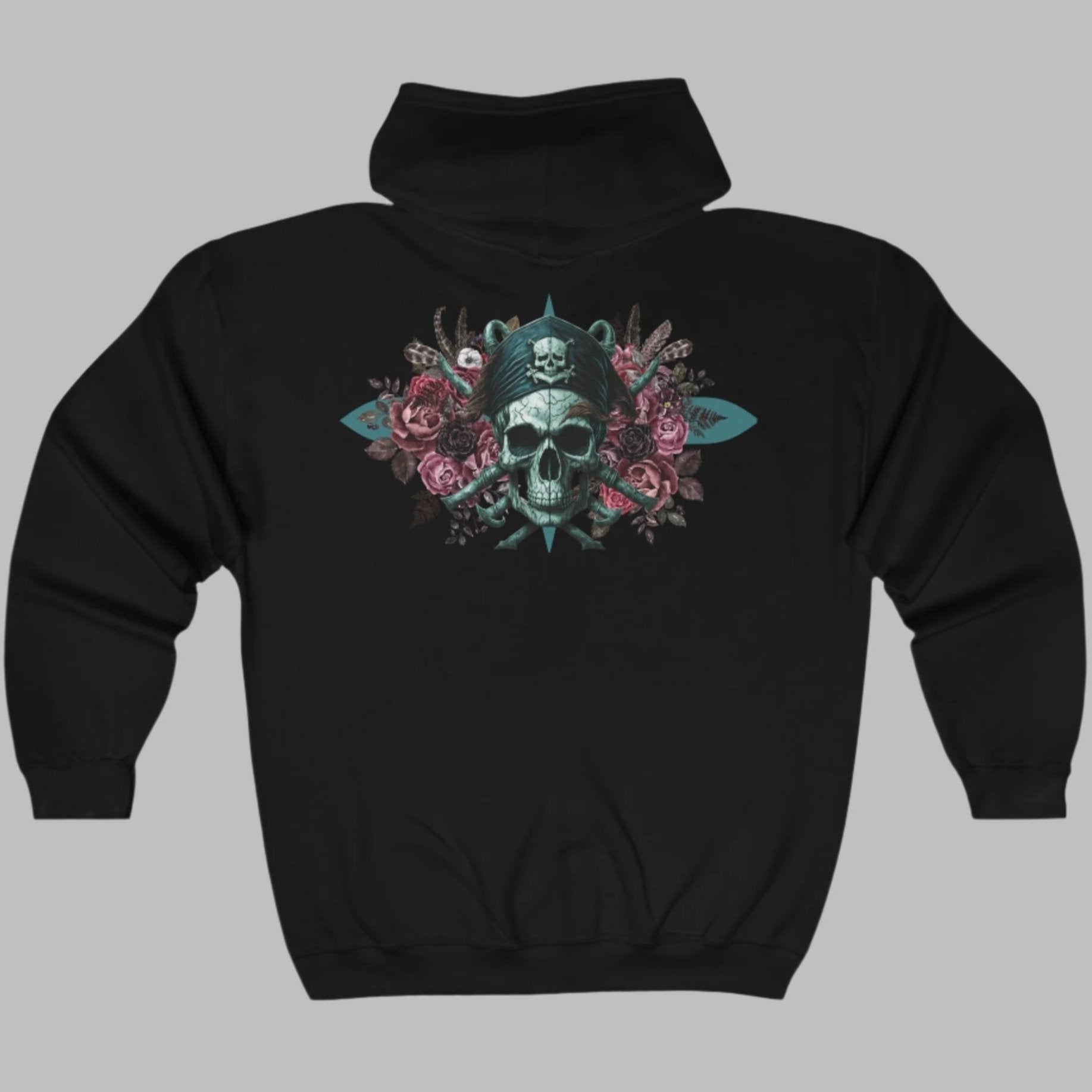 This vintage pirate skull crossbones 2-sided print hoodie is the perfect addition to your motorcycle apparel collection. Consider this motorcycle gift for the biker woman or moto mom in your life.