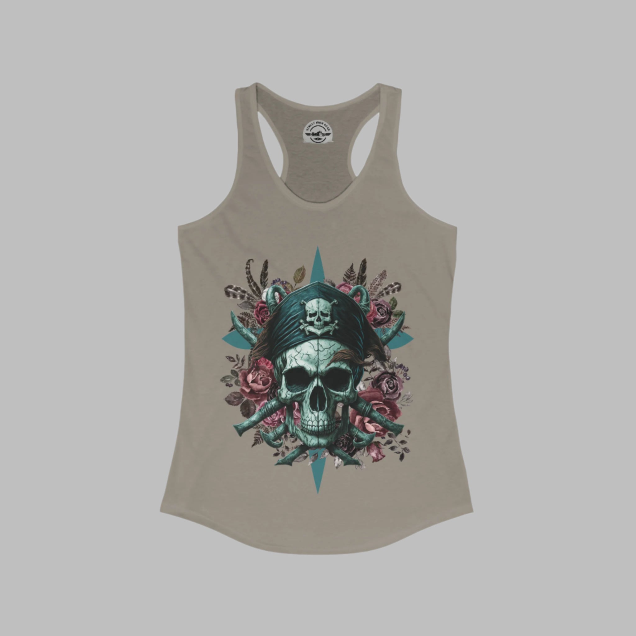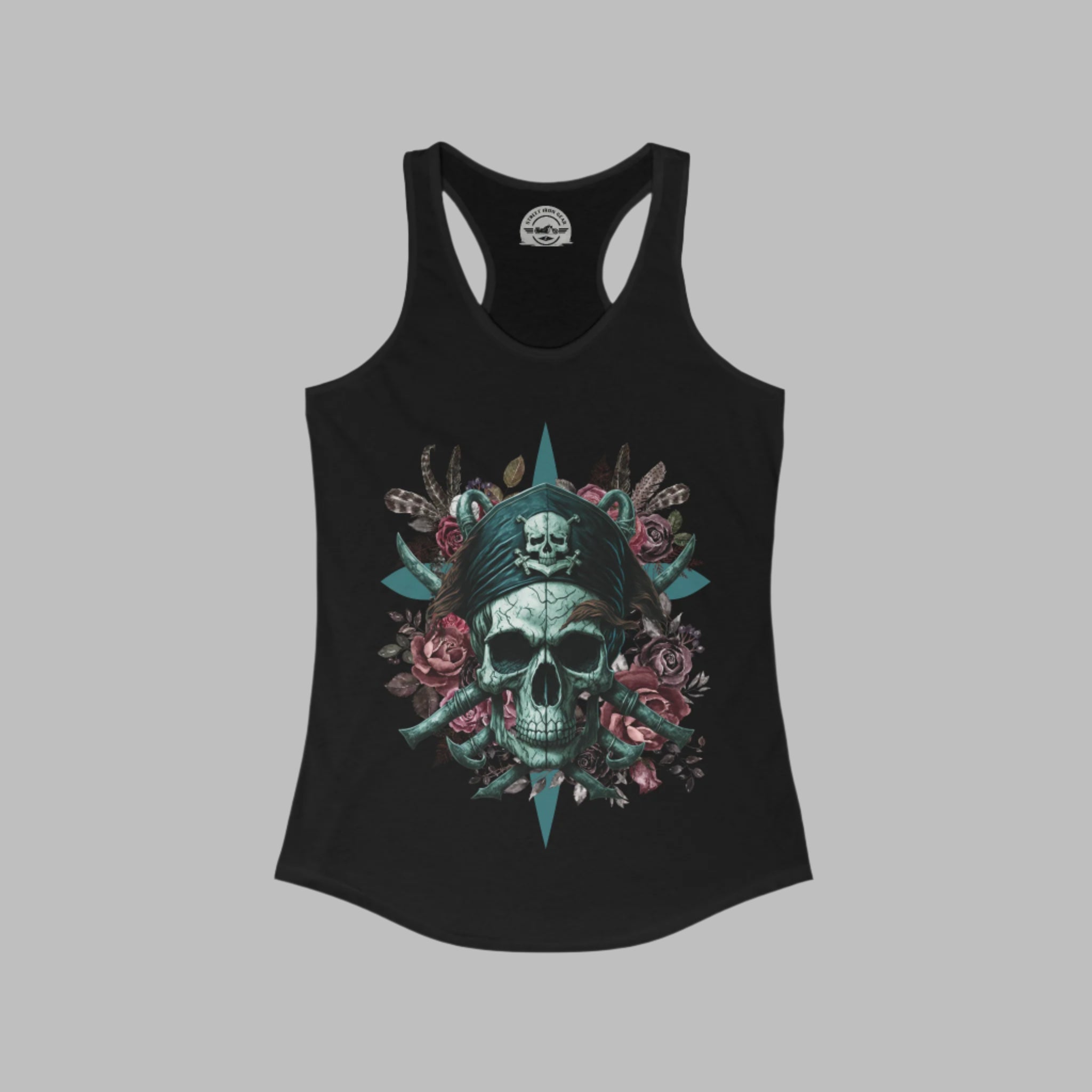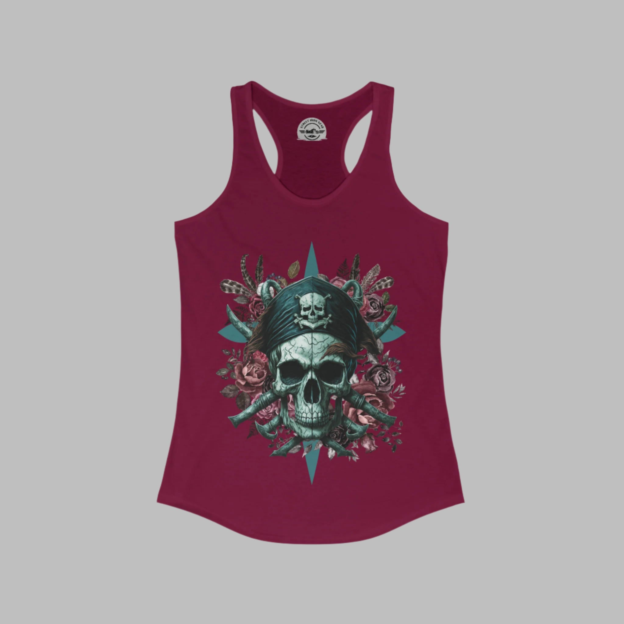 This vintage pirate skull crossbones razorback tank top is the perfect addition to your motorcycle apparel collection. Consider this motorcycle gift for the biker woman or moto mom in your life.