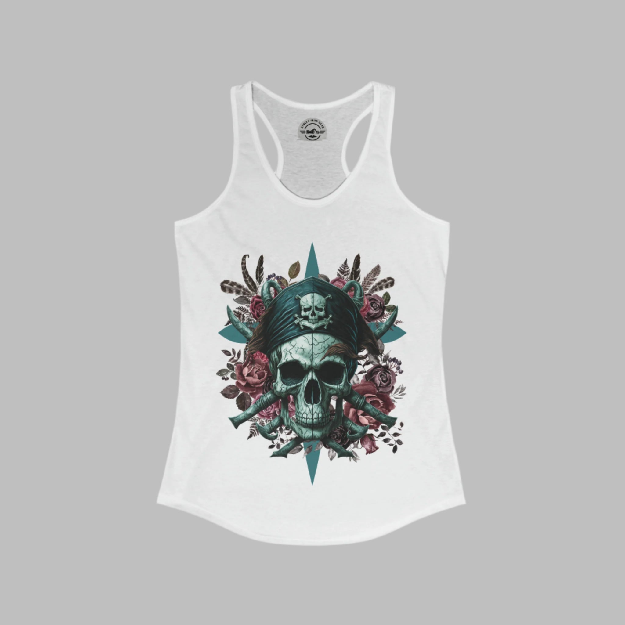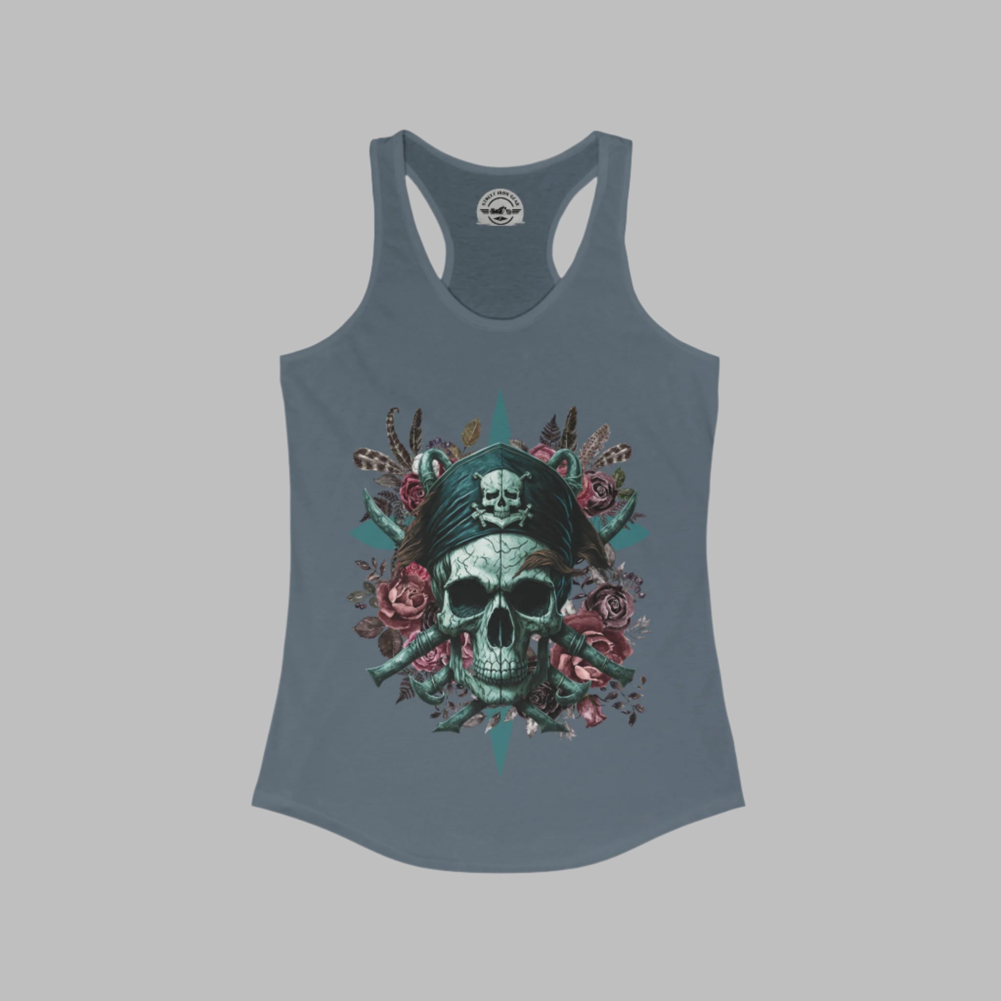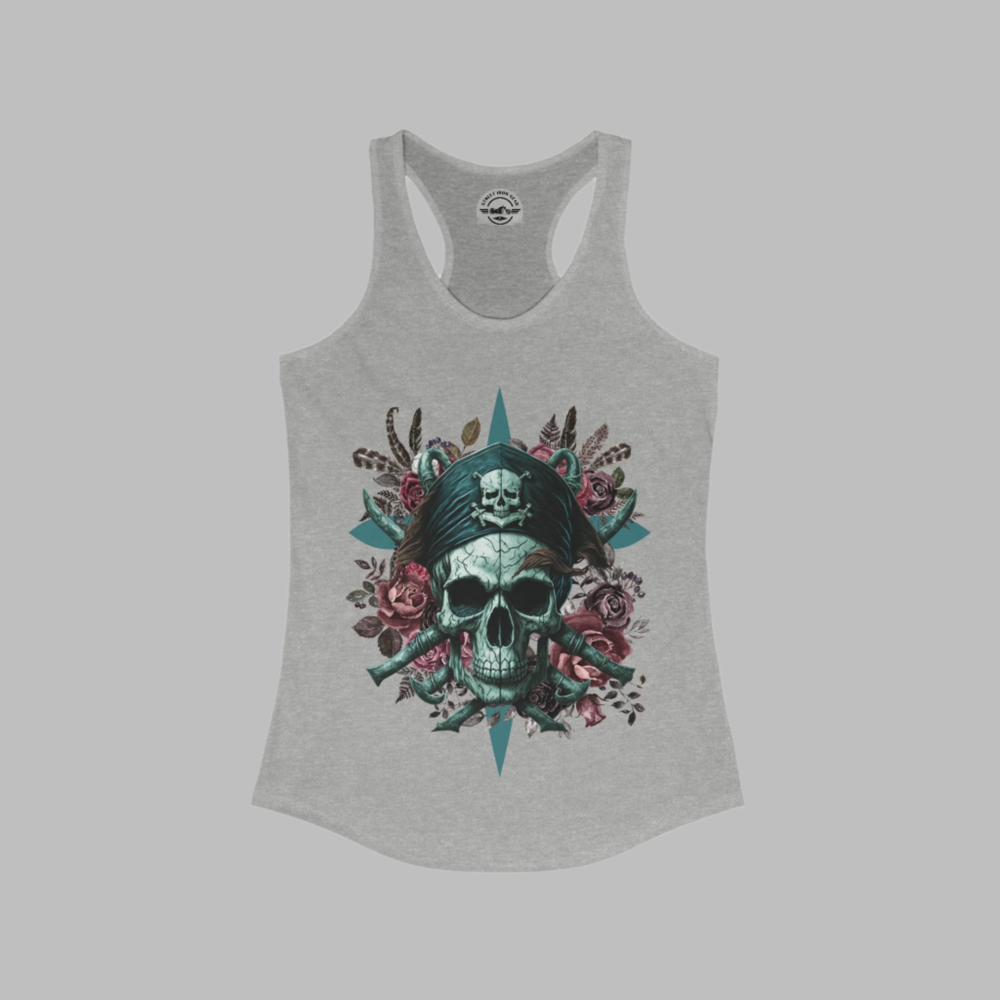 This vintage pirate skull crossbones razorback tank top is the perfect addition to your motorcycle apparel collection. Consider this motorcycle gift for the biker woman or moto mom in your life.