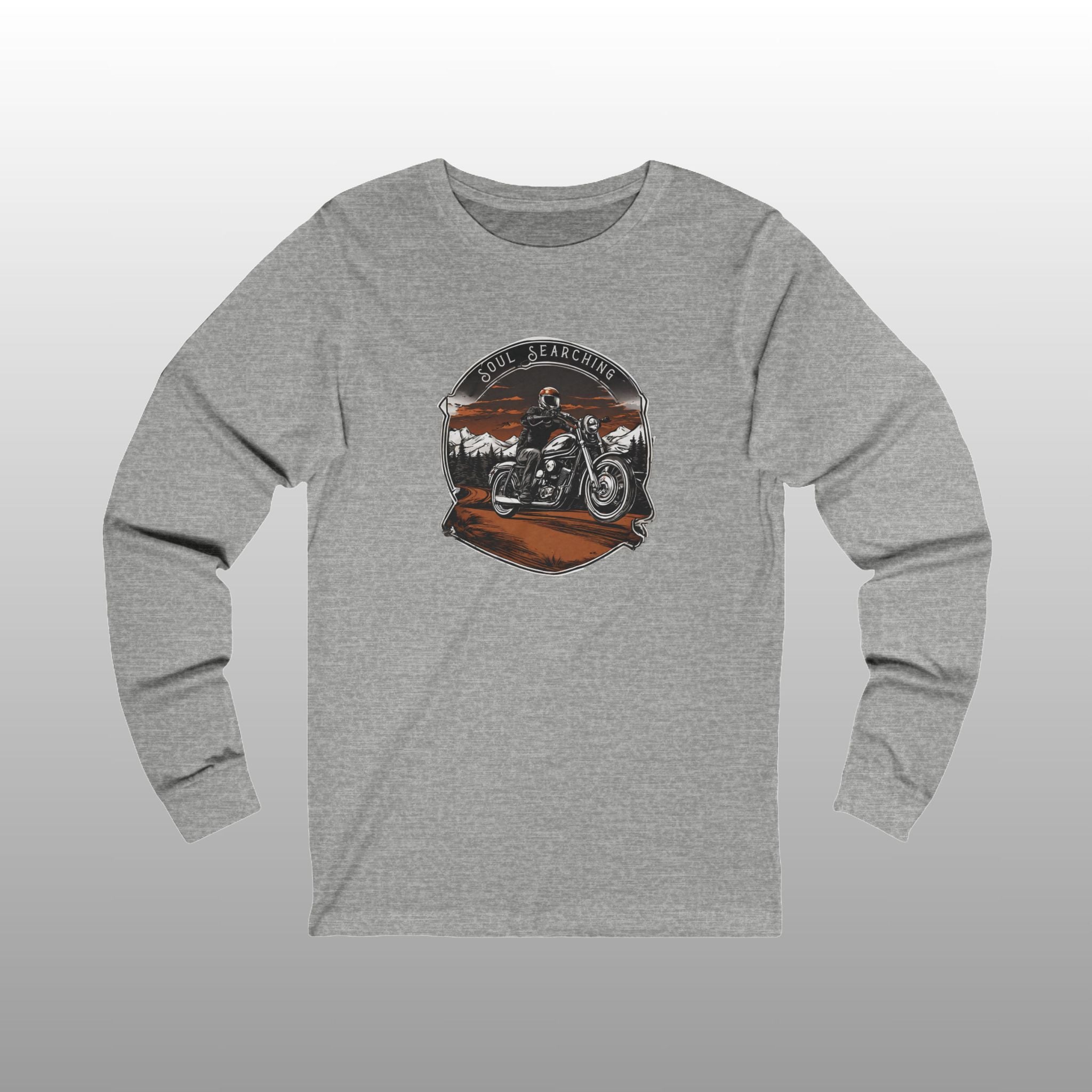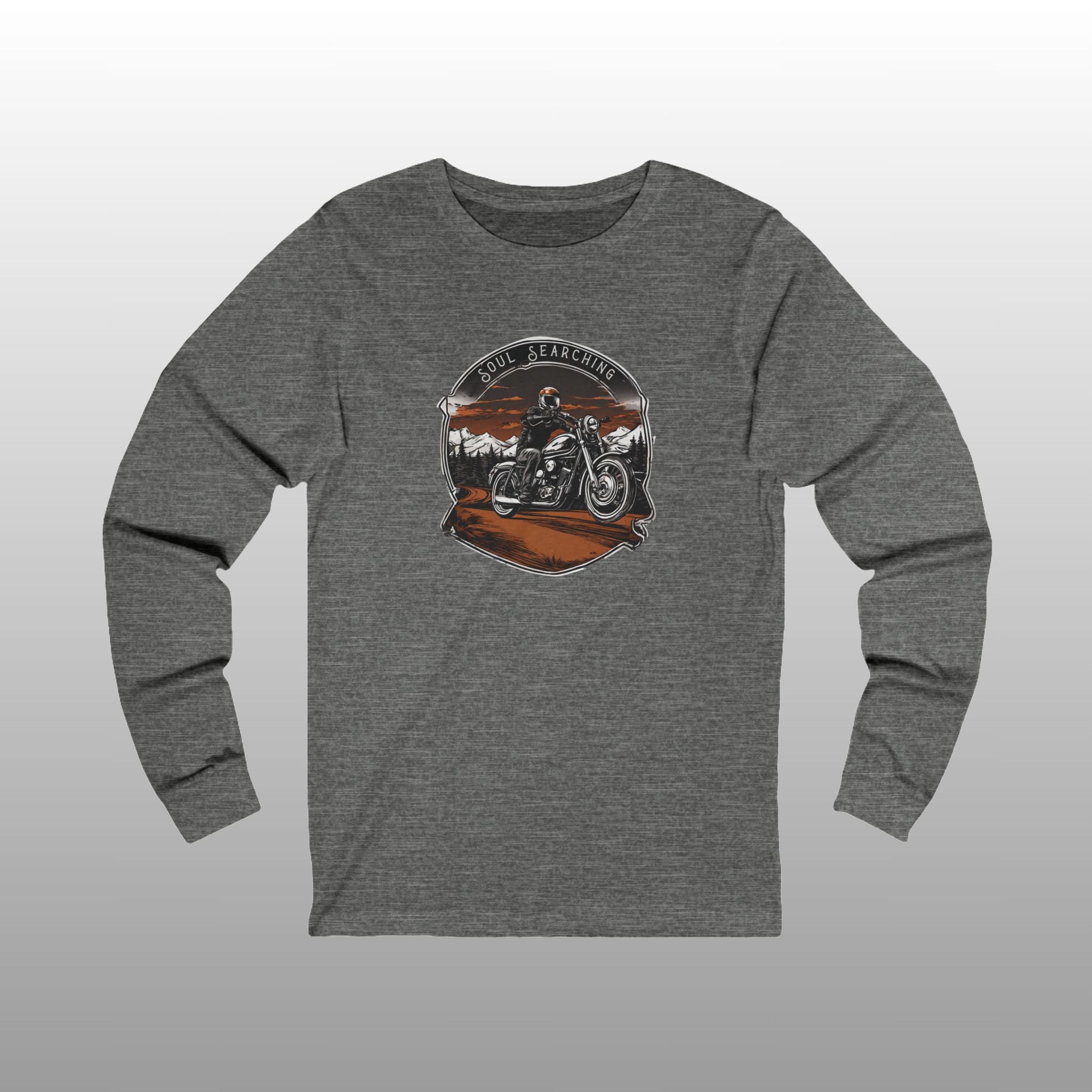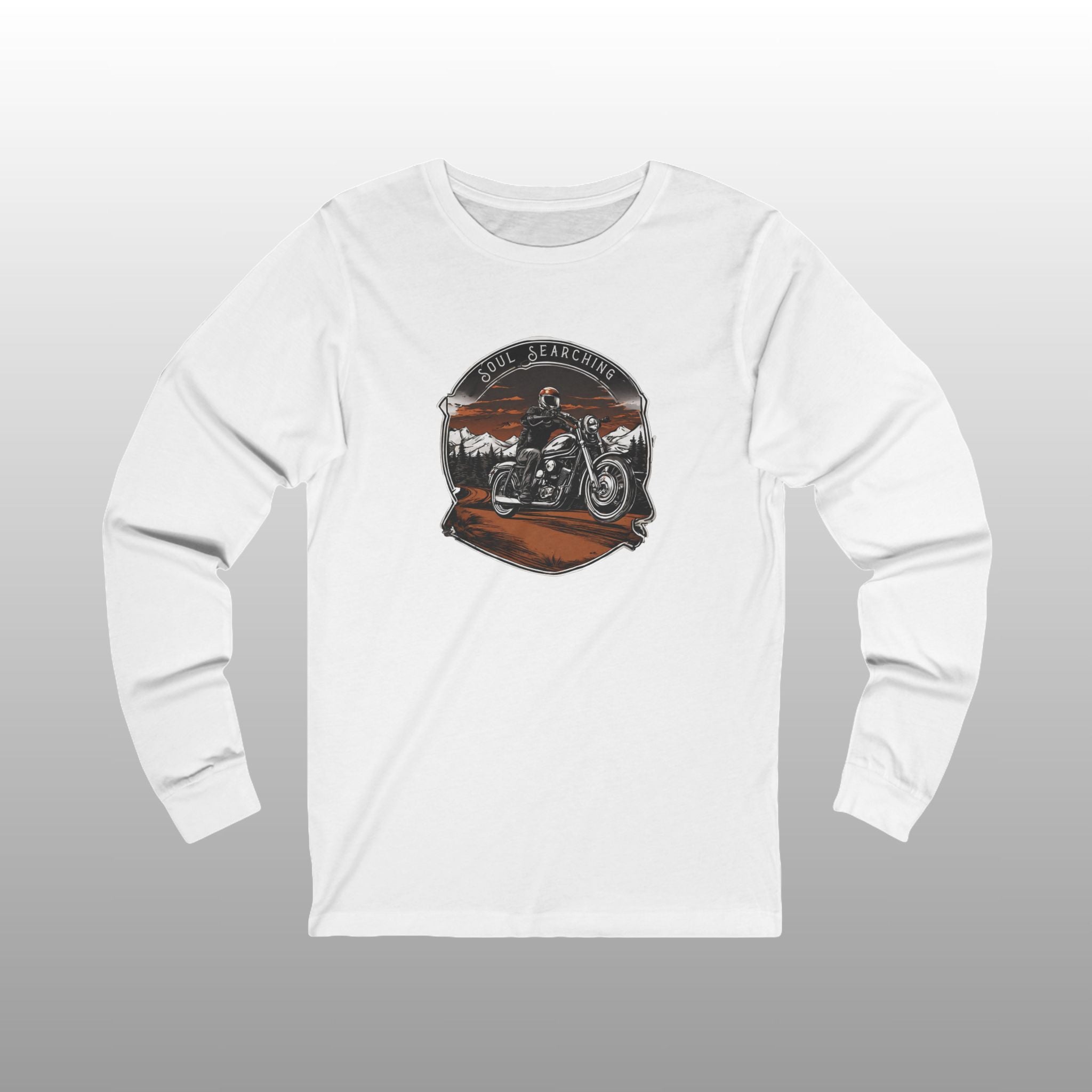 Embark on a journey of self-discovery with our "Soul Searching" Motorcycle T-shirt. Featuring a biker on a cruiser motorcycle, set against the backdrop of the sun-drenched open road, this tee embodies the quest for inner truths and the thrill of the ride.