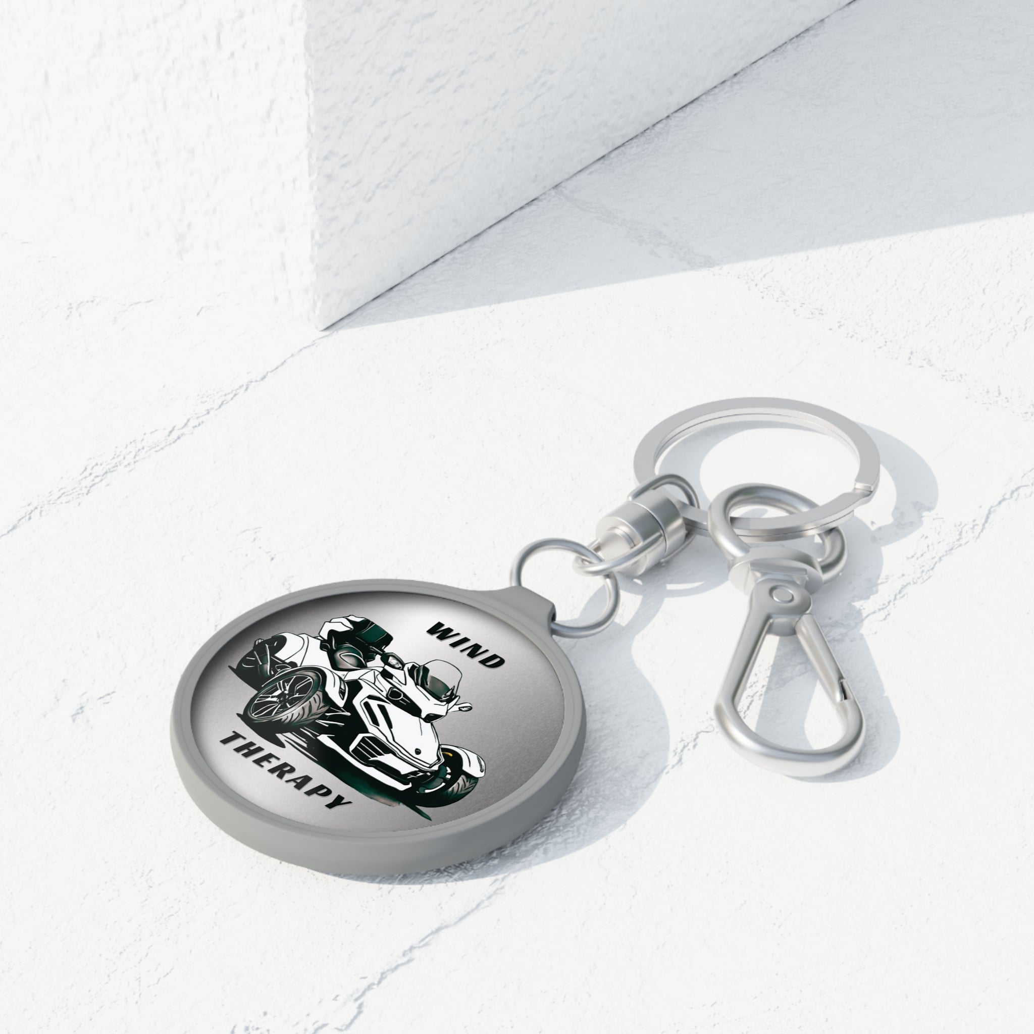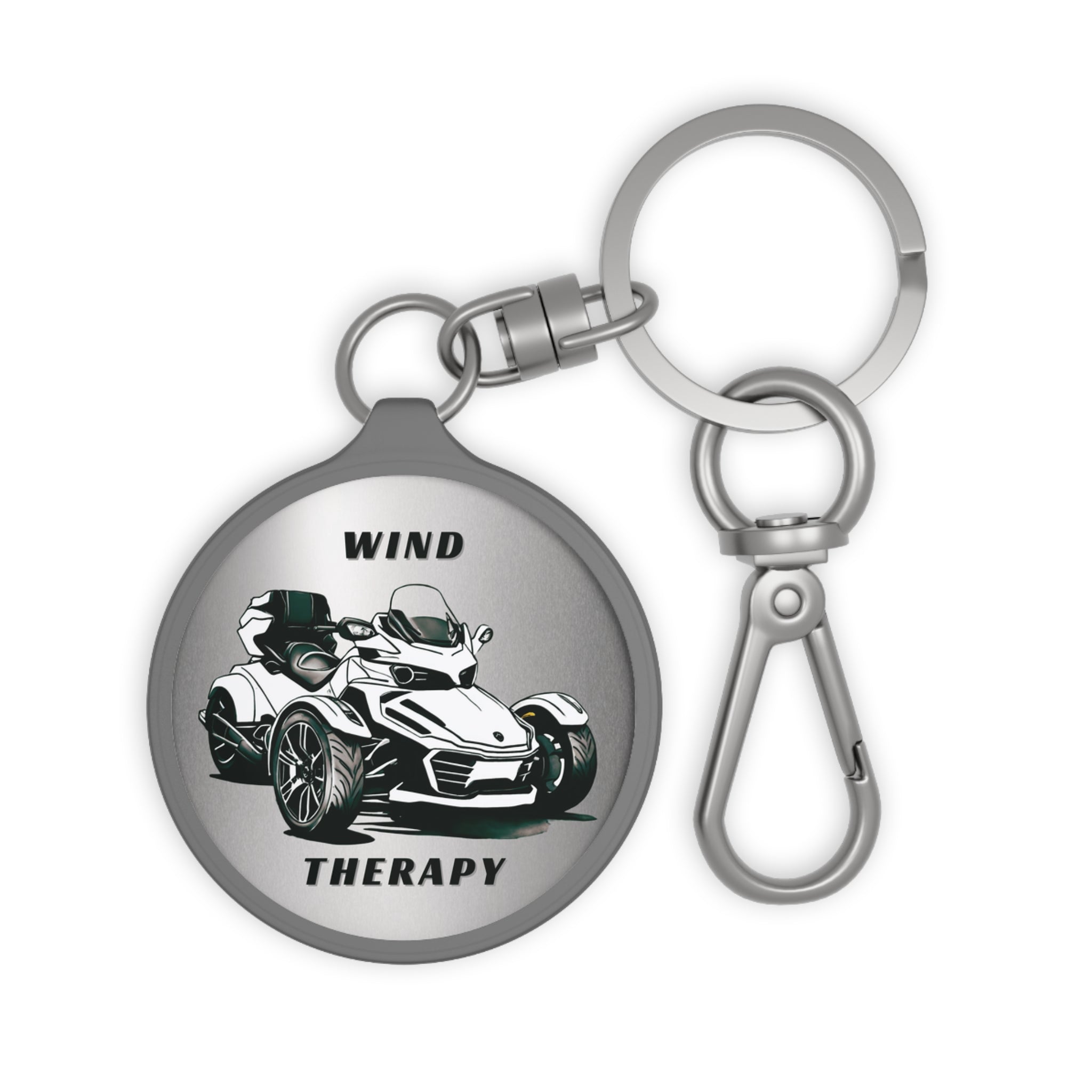 Carry your love for the open road with our Can-Am Spyder Acrylic Keychain! This keychain features a hand-drawn image of the iconic Spyder, paired with the text "Wind Therapy" against a sleek metallic silver gradient background, perfect for those wanting to match their bike’s color. A great gift for Spyder riders and motorcycle enthusiasts, this durable keychain is a stylish and functional way to keep your keys secure while showcasing your passion for riding.