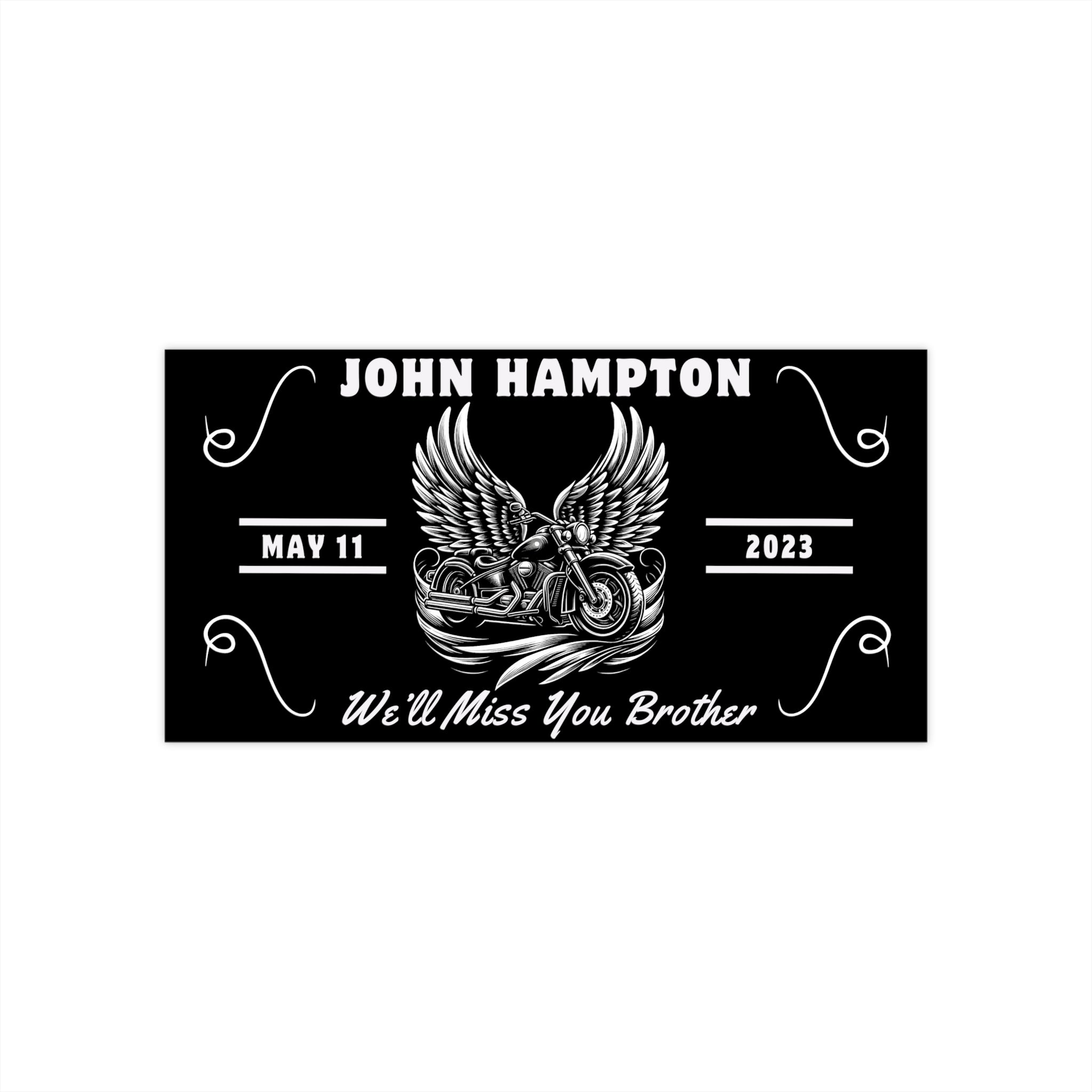 This custom-designed bumper sticker offers a poignant tribute for biker memorials or poker run events, with its elegant black and white graphic of a traditional cruiser motorcycle cradled by angel wings. It includes customizable options for adding a personal quote, the recipient's names, and a significant date, making each sticker a unique and meaningful keepsake. Perfect for motorcycle clubs to resell at large gatherings, this bumper sticker not only honors the memory of loved ones but also serves as a powerful fundraising tool to support families affected by loss, fostering a spirit of community and support.