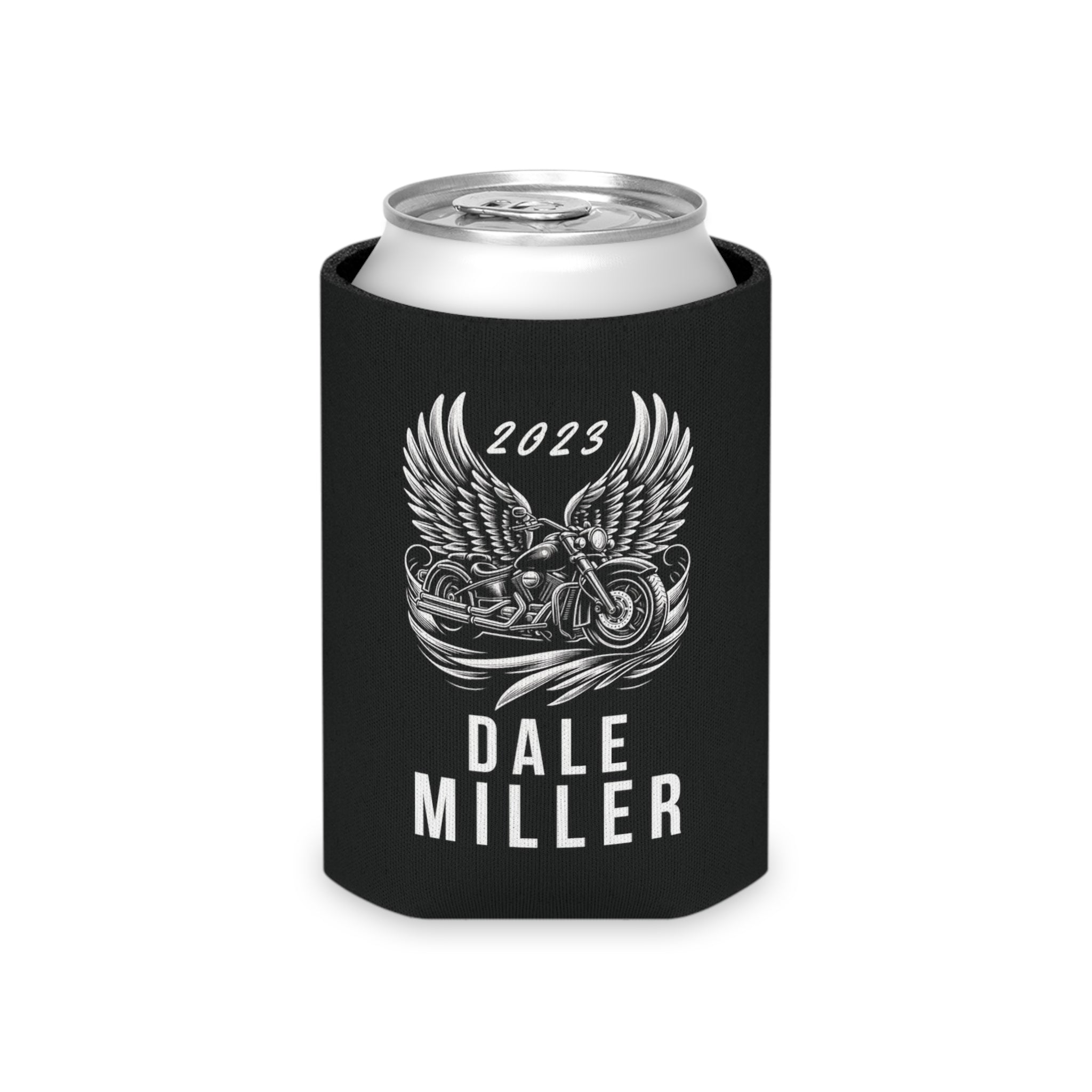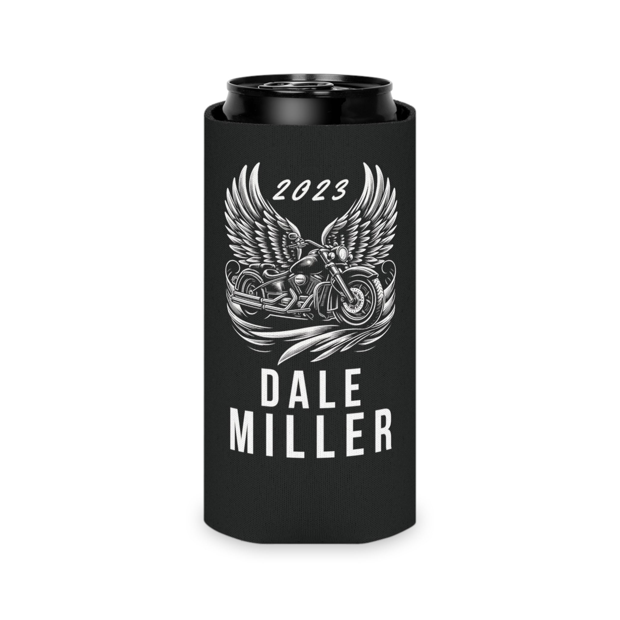 This custom-designed insulated can cooler / cuzzi is a perfect keepsake for biker memorial or poker run events, featuring a unique design of a cruiser wrapped in angel wings. It offers spaces for personalization, including a custom quote, the recipient's names, and an important date, making it a memorable and heartfelt tribute. Ideal for motorcycle clubs to resell at large events, this can cooler not only serves as a symbol of remembrance but also as a means to support and raise funds for families affected by loss, uniting the community in solidarity and compassion.