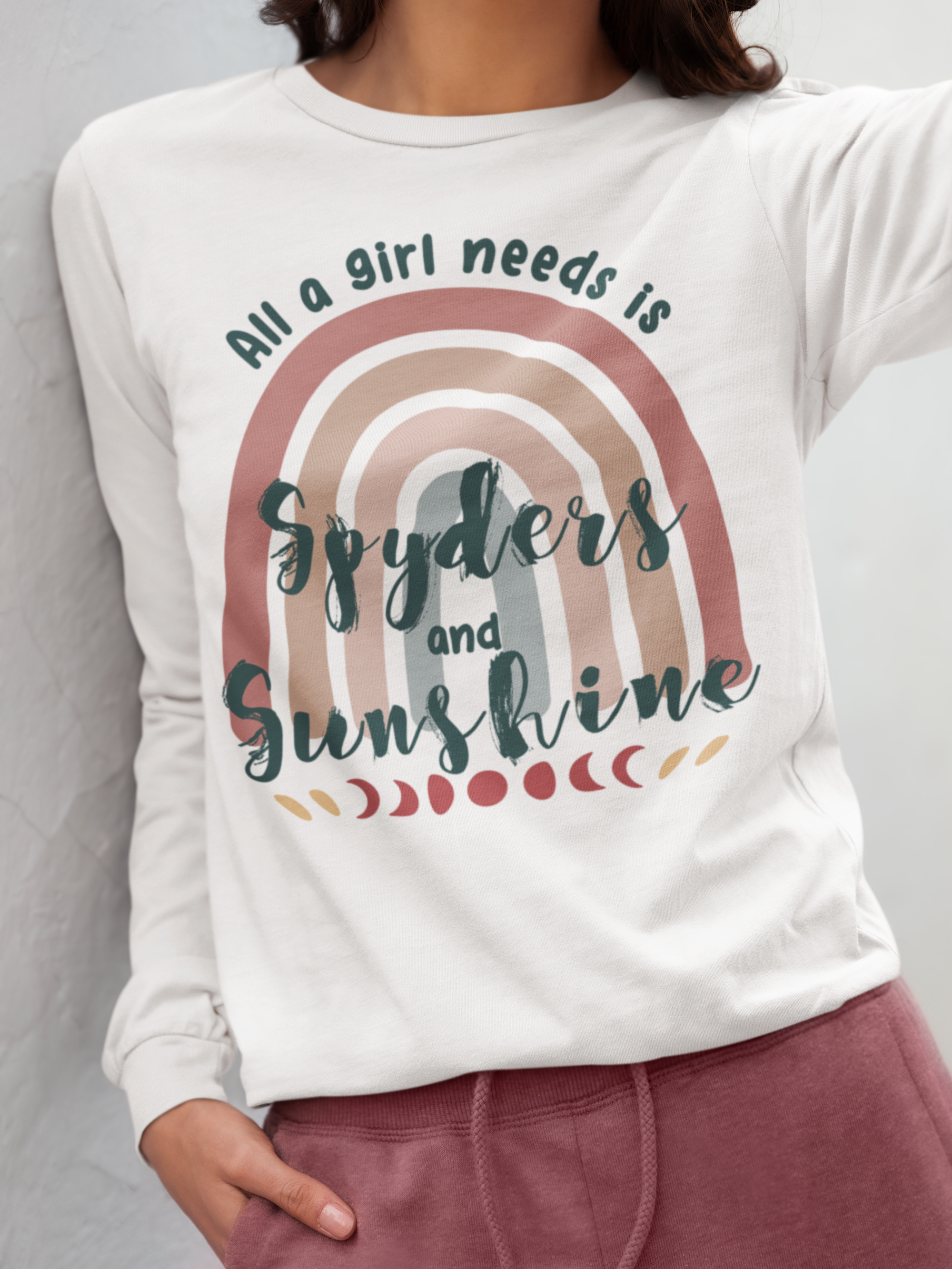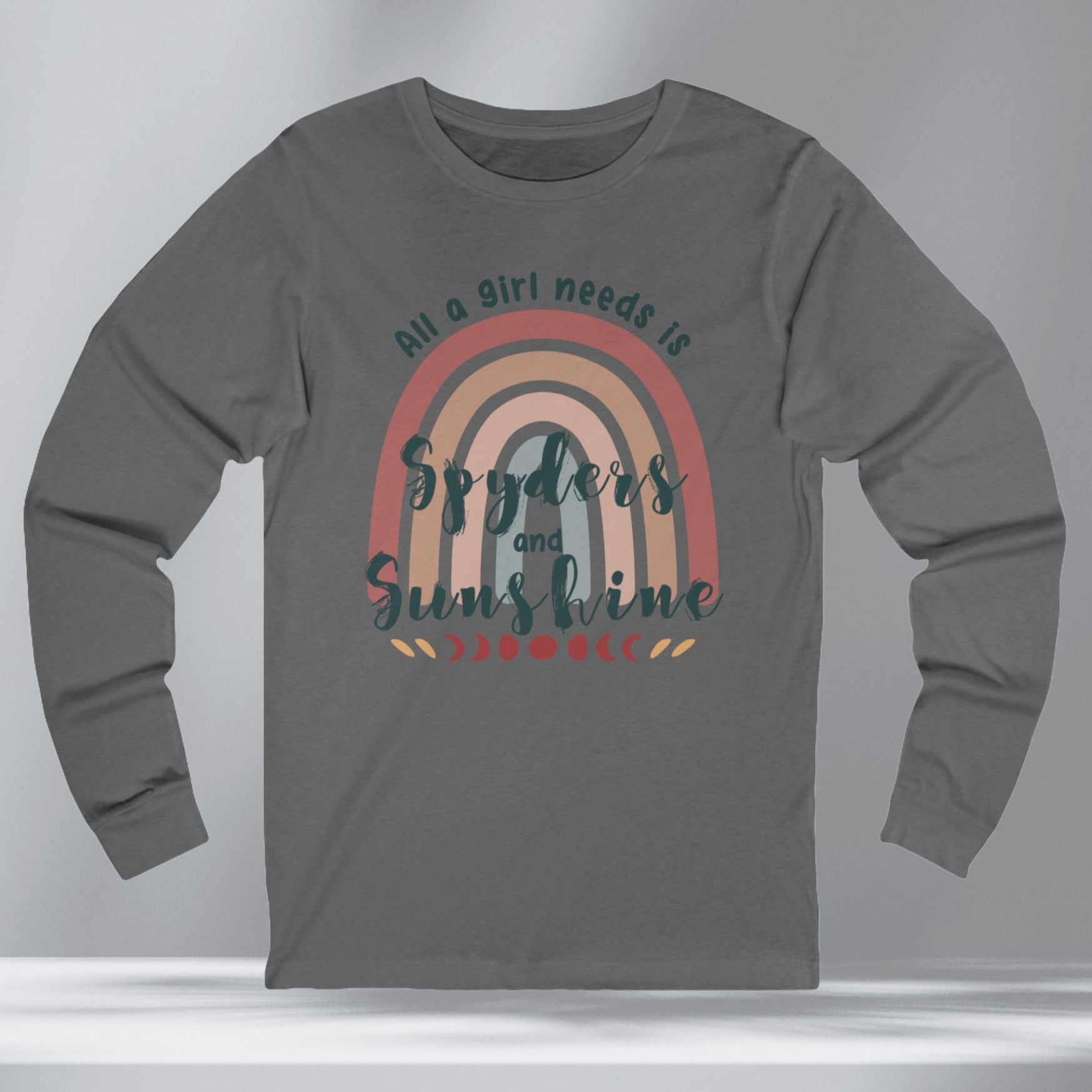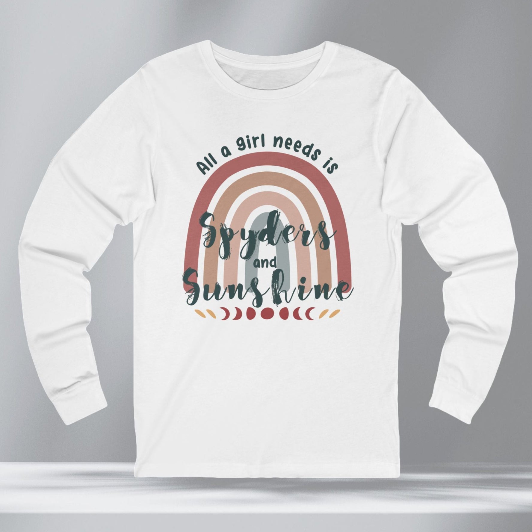 Get your retro groove on with our 'All a girl needs is Spyders and Sunshine' long sleeved T-shirt. This women's retro bohemian shirt combines colorful, vintage fonts and positivity. Your amazing journey starts here with this fun and bold retro boho Can-Am Spyder themed shirt.