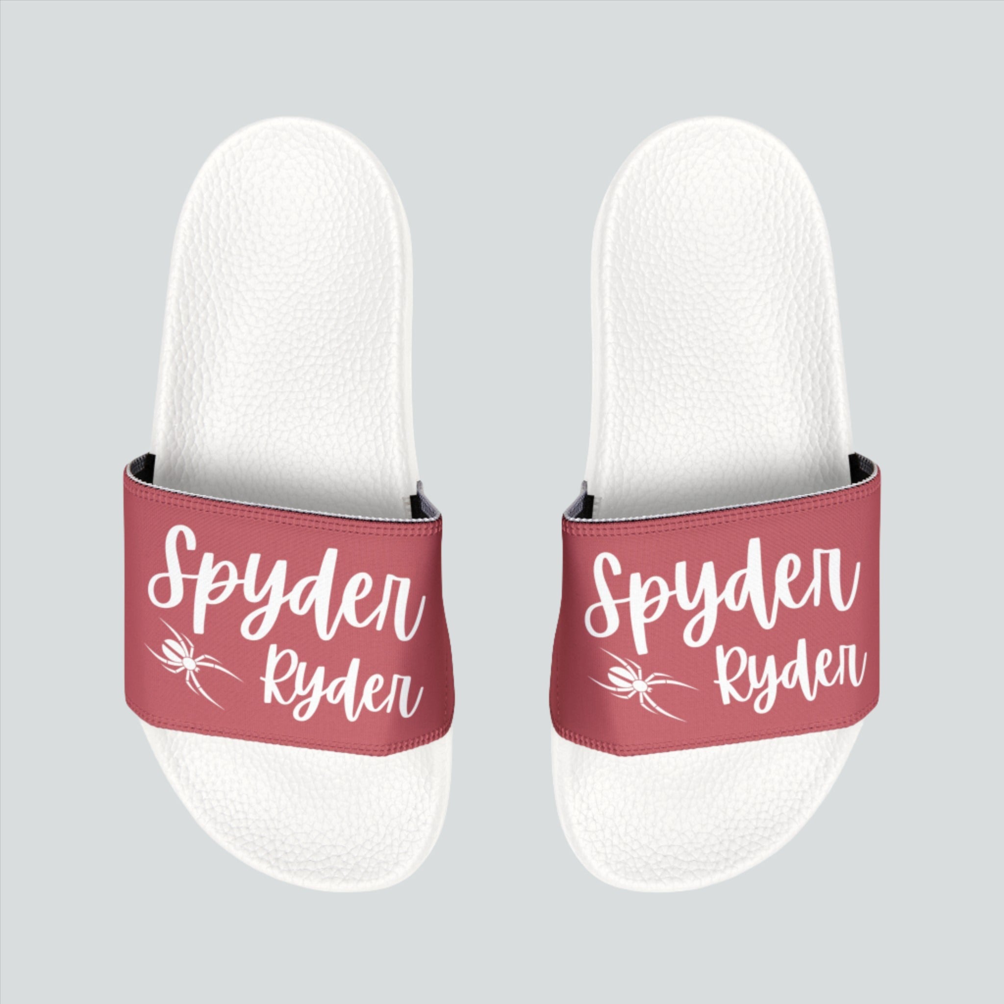 Celebrate your love for the open road with these stylish women's slider shoes, featuring a monochrome graphic inspired by the Can-Am Spyder including text that reads "Spyder Ryder". Designed for ultimate comfort and durability, these sliders echo the luxury of the Can-Am Spyder RT Sea-to-Sky and the rugged design of the Can-Am Ryker Rally. Perfect for enthusiasts, they symbolize the distinctive look of the Can-Am Spyder F3 Limited and F3-T.