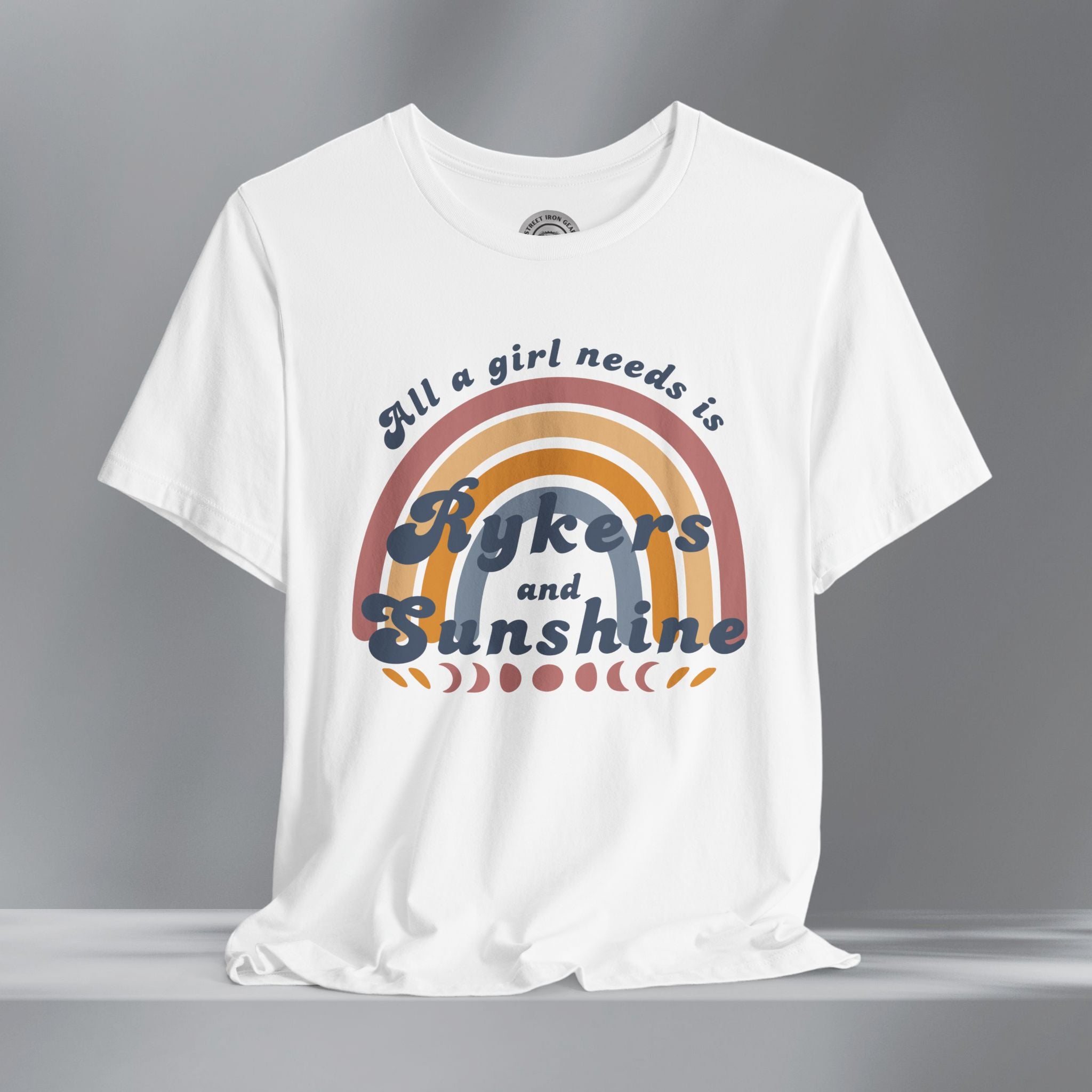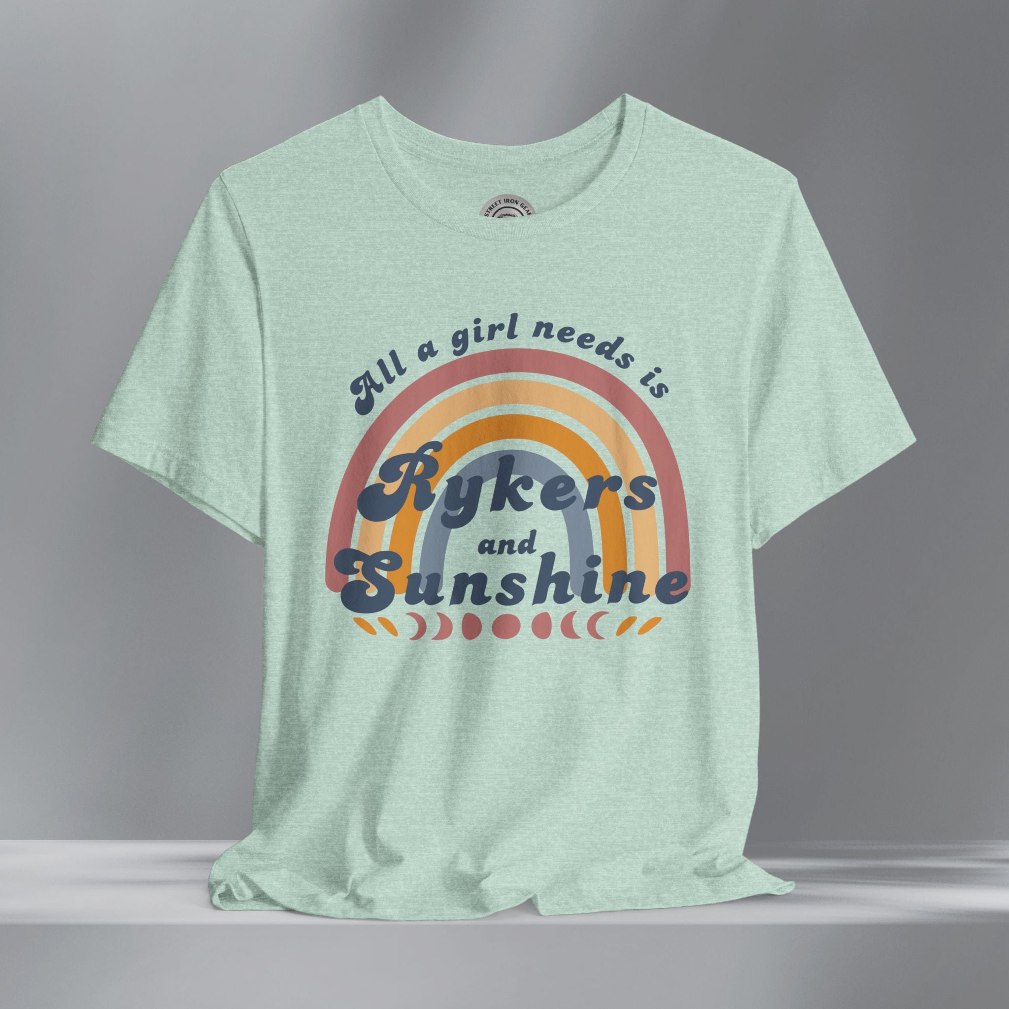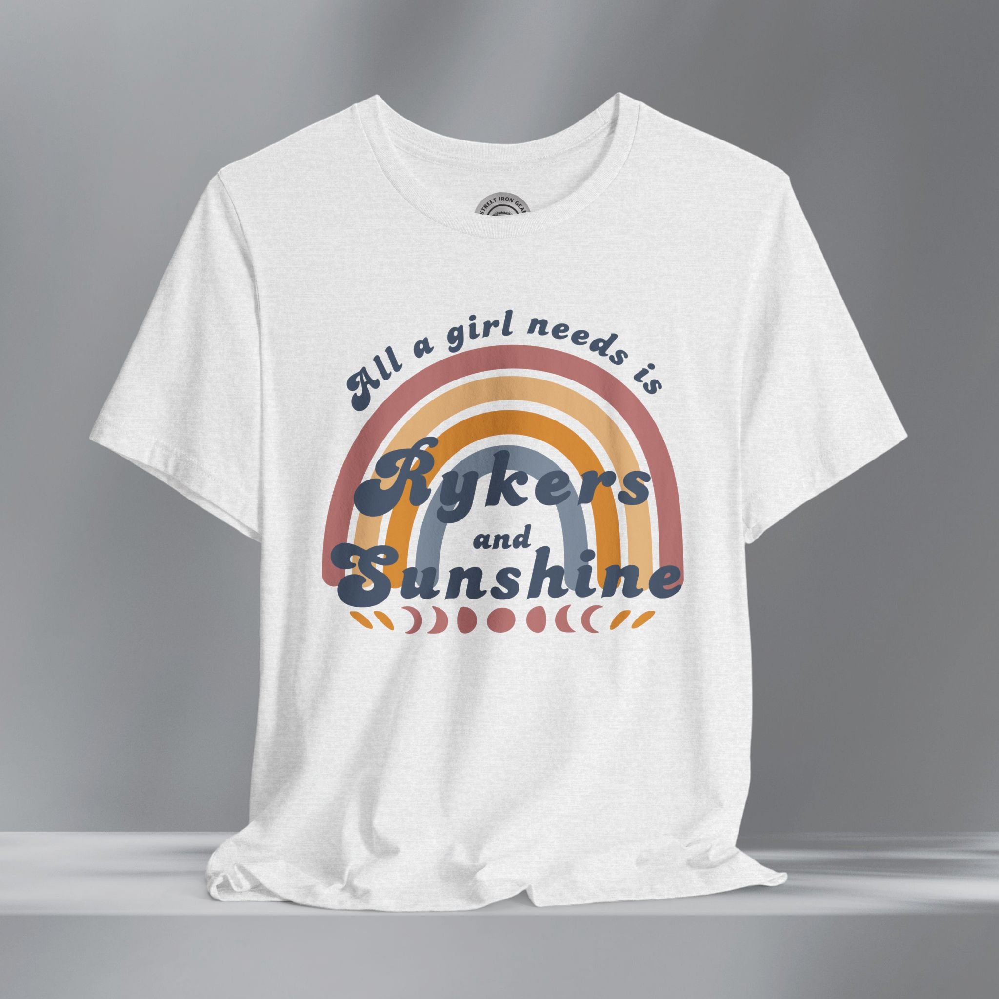 Get your retro groove on with our 'All a girl needs is Rykers and Sunshine' T-shirt. This women's retro bohemian shirt combines colorful, vintage fonts and positivity. Your amazing journey starts here with this fun and bold retro Can-Am Ryker shirt.