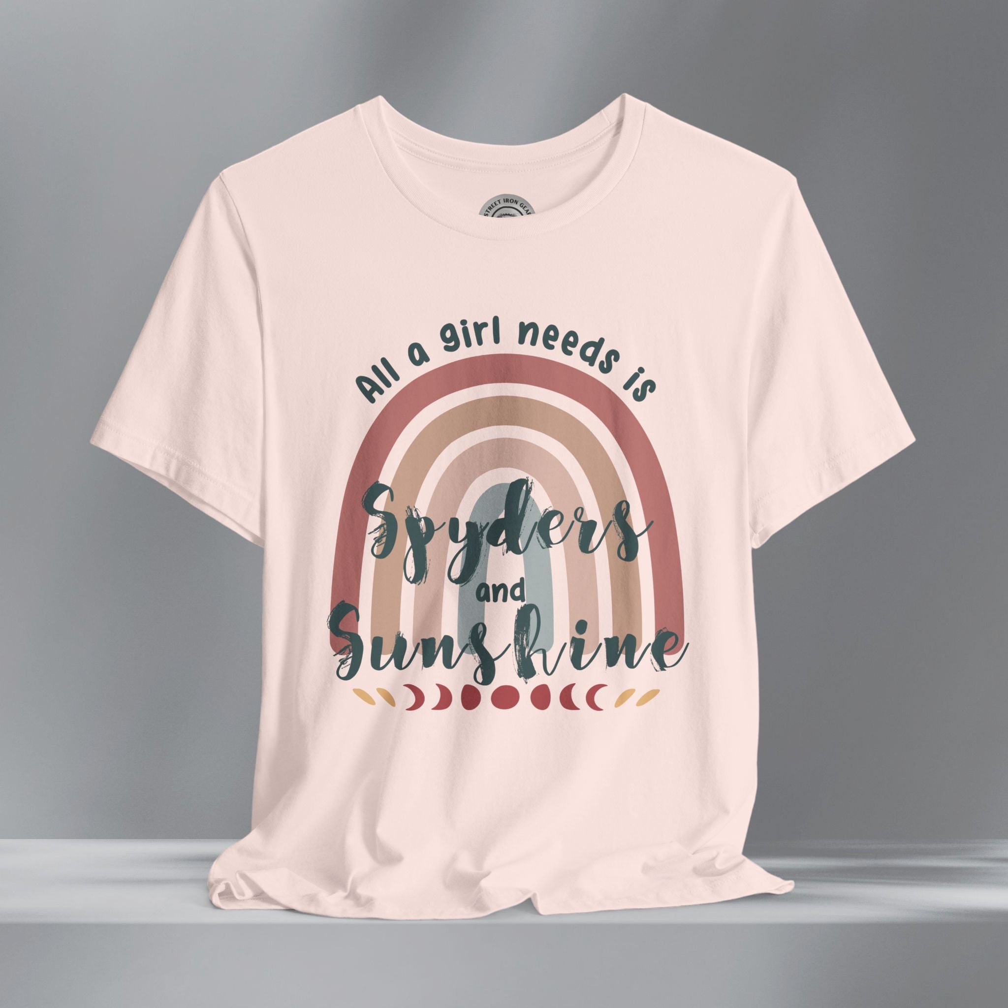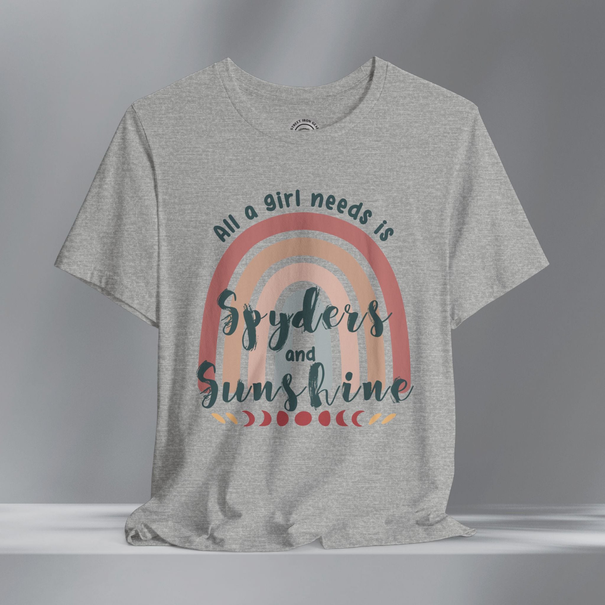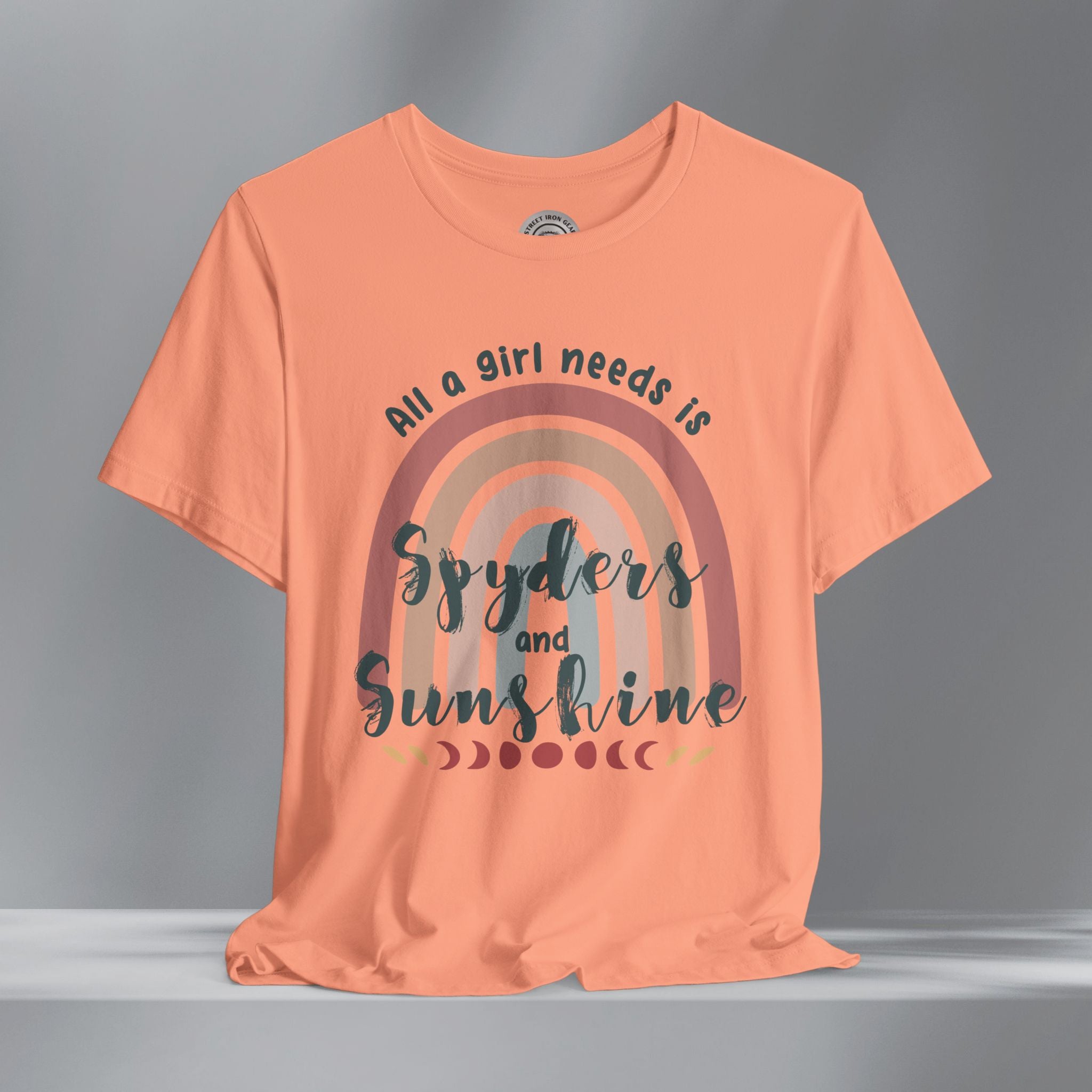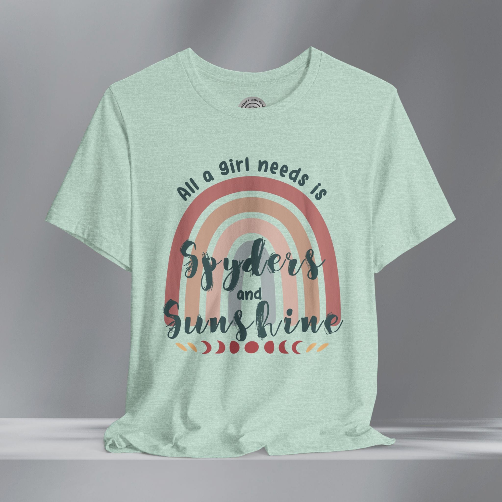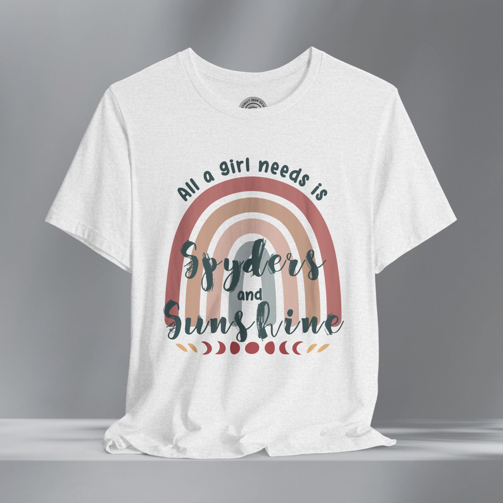 Get your retro groove on with our 'All a girl needs is Spyders and Sunshine' T-shirt. This women's retro bohemian shirt combines colorful, vintage fonts and positivity. Your amazing journey starts here with this fun and bold vintage style Can-Am Spyder shirt.